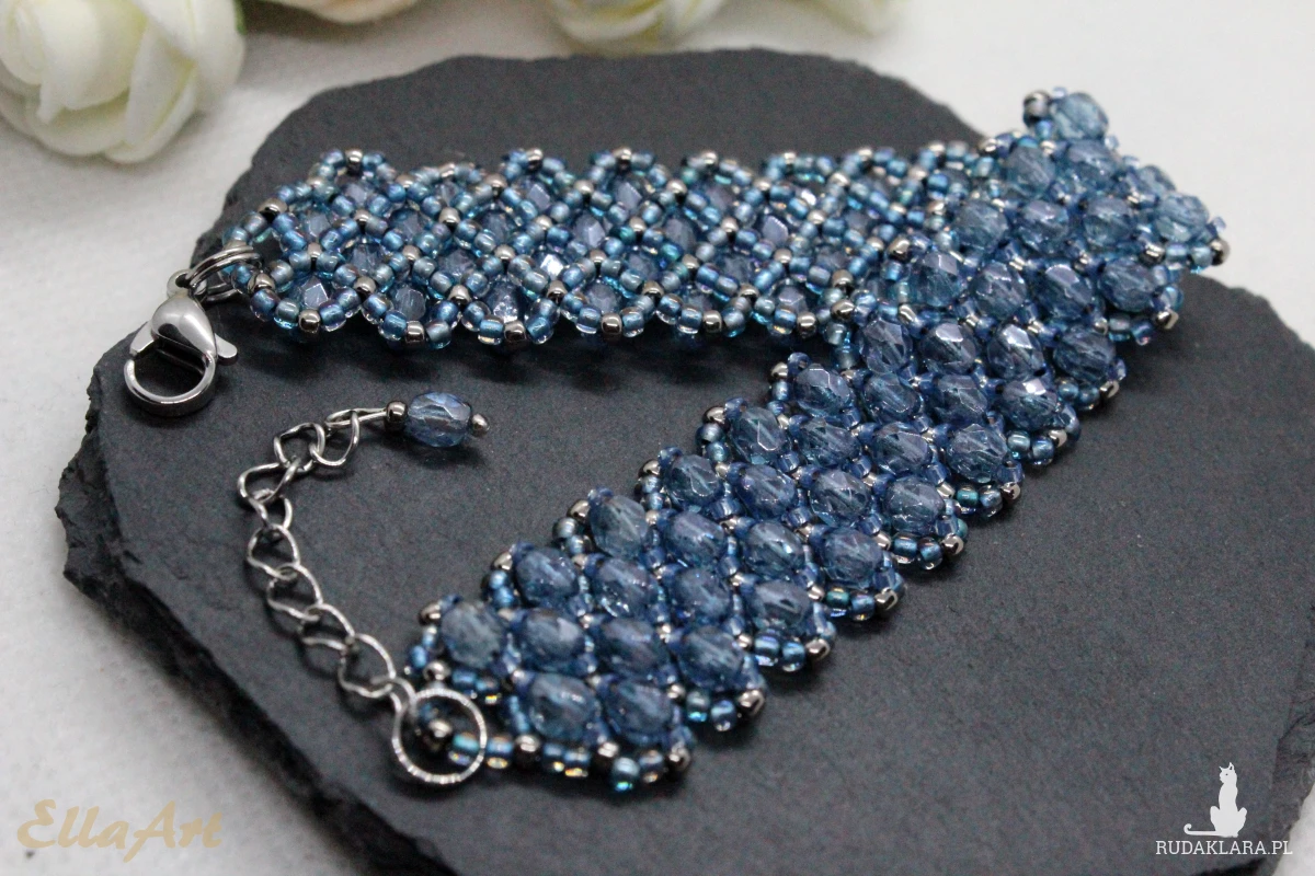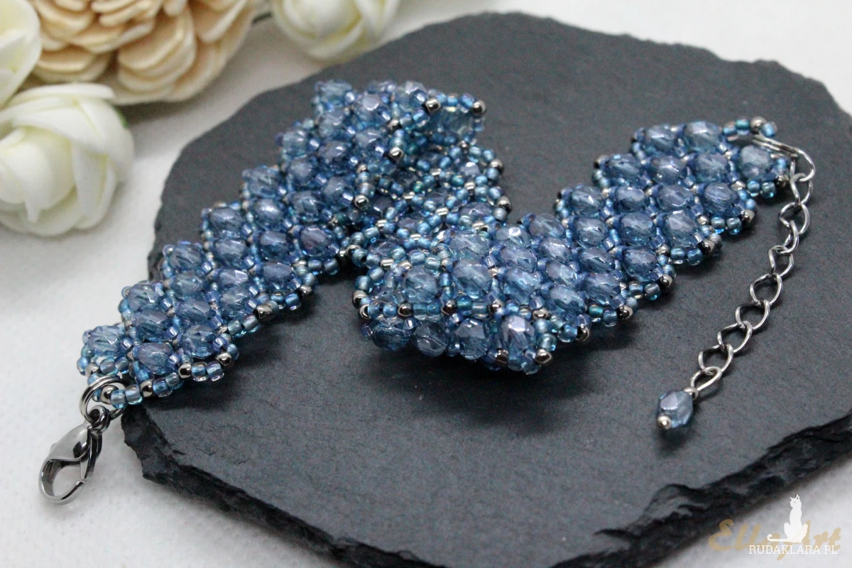 Bransoletka uszyta z kryształków FirePolish 4mm na siatce z koralików japońskiej firmy Toho11.