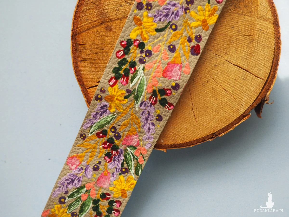 Odkryj wyjątkową skórzaną bransoletkę ręcznie malowaną w kwiaty, stworzoną z naturalnej skóry pochodzącej z recyklingu. To nie tylko modny dodatek, ale również świadomy wybór - każda sztuka powstaje z materiałów odzyskanych, dzięki czemu ścinki skóry używanej w tapicerstwie zyskują drugie życie w artystycznej odsłonie.