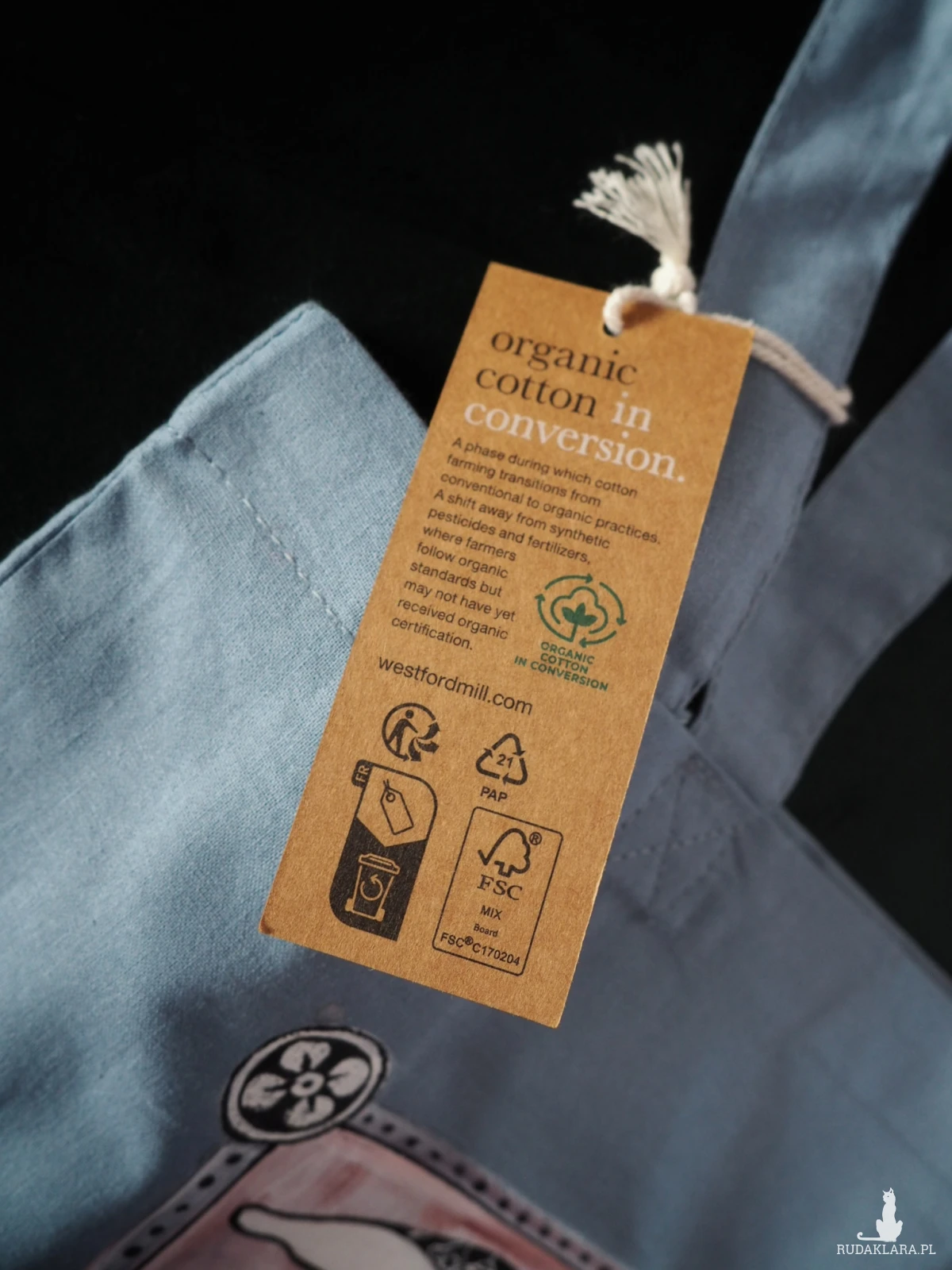 Ręcznie malowana bawełniana torba zakupowa z wzorem joginki. Będzie doskonałym uzupełnieniem stroju lub prezentem imieninowym, urodzinowym, gwiazdkowym itp. dla osoby ceniącej rękodzieło. Torba będzie idealna na zajęcia sportowe (na jogę!), do pracy, na spacer po mieście, do szkoły - zmieści teczkę z dokumentami, drugie śniadanie, wodę, telefon, portfel itd. Ciekawy wzór przyciągnie spojrzenia wokół. Sprawdzi się zarówno na co dzień, jak i na wakacyjny wyjazd. Wzór na torbie jest trwały i wodoodporny - torbę można wyprać ręcznie w temp. do 30 stopni (nie wykręcać, nie wirować - powiesić z wodą do odcieknięcia. Można prasować po lewej stronie).