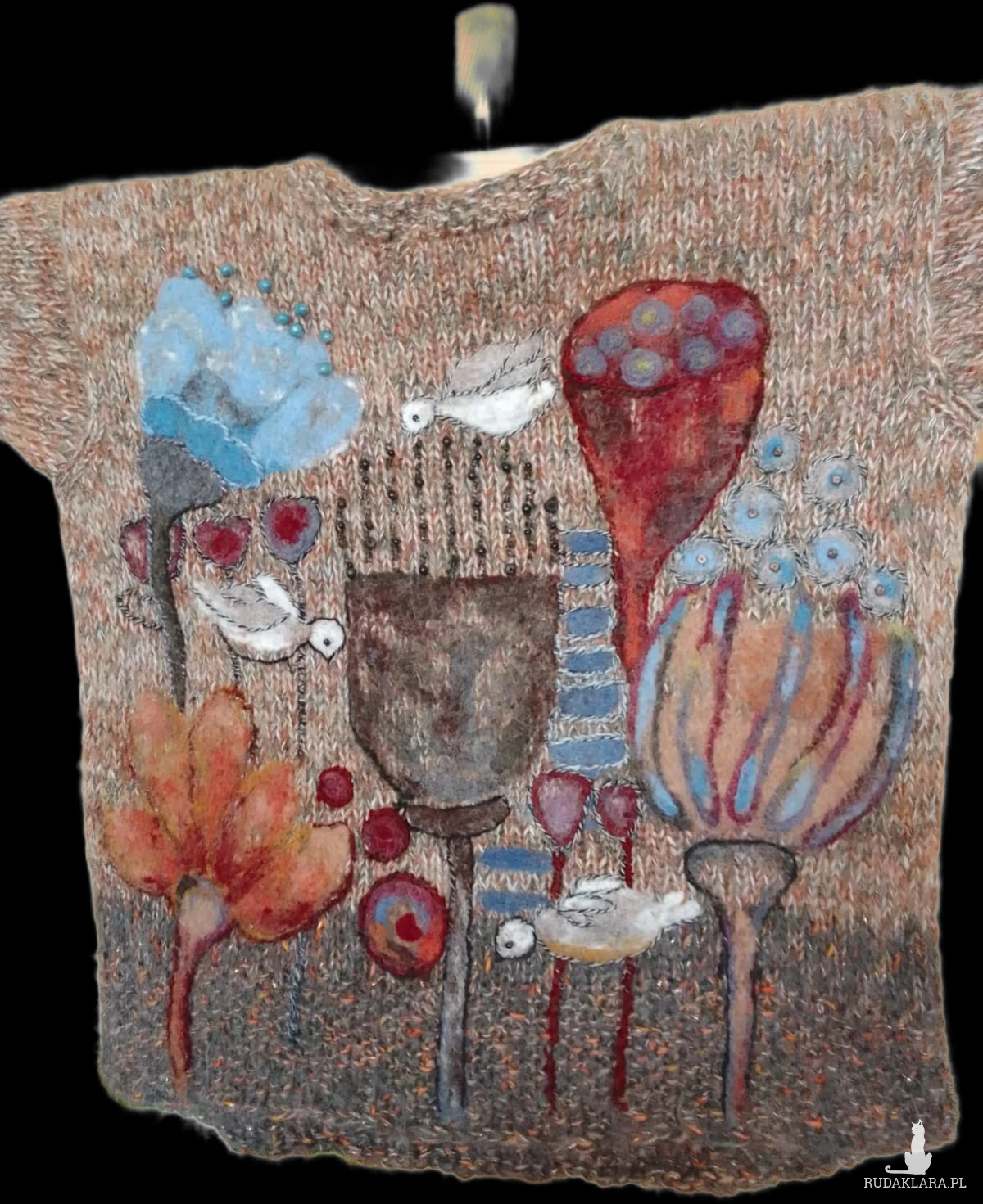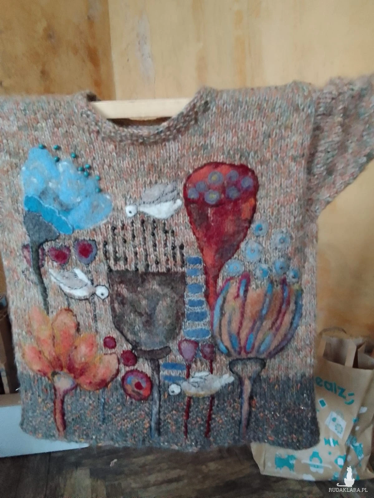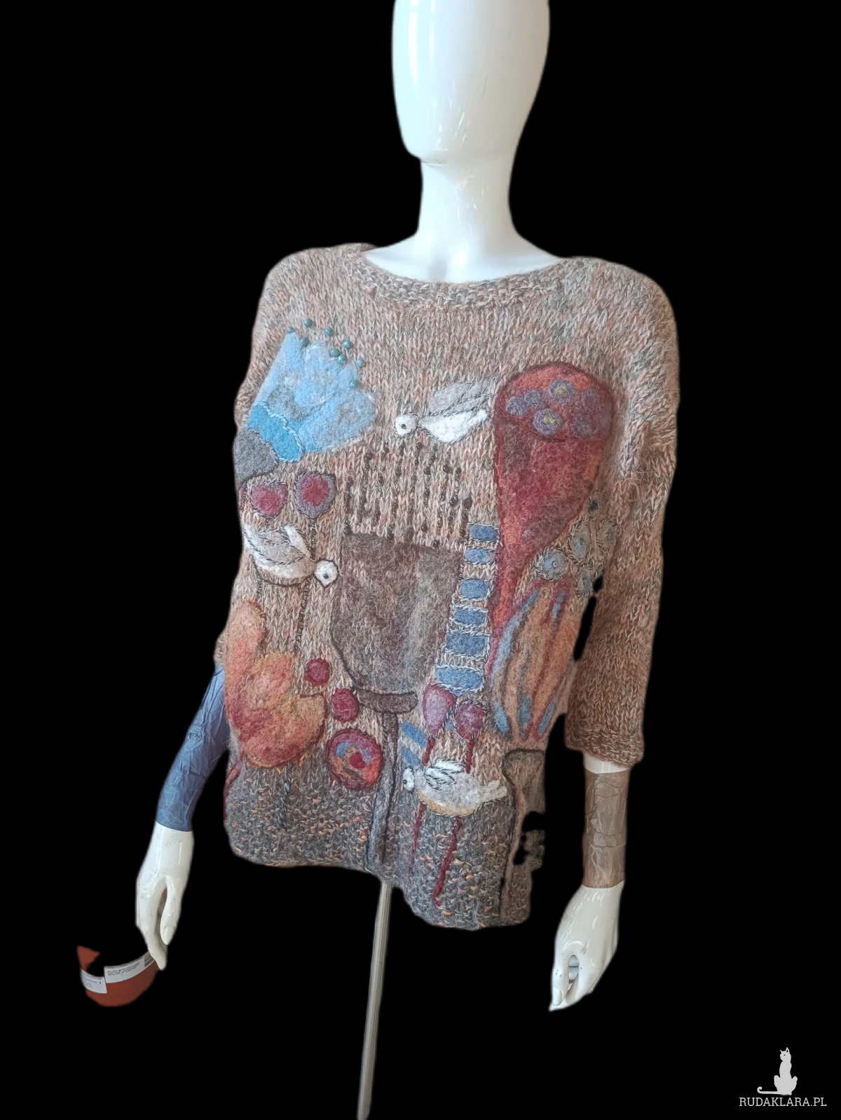 Wełniany sweter z malowniczym filcowaniem