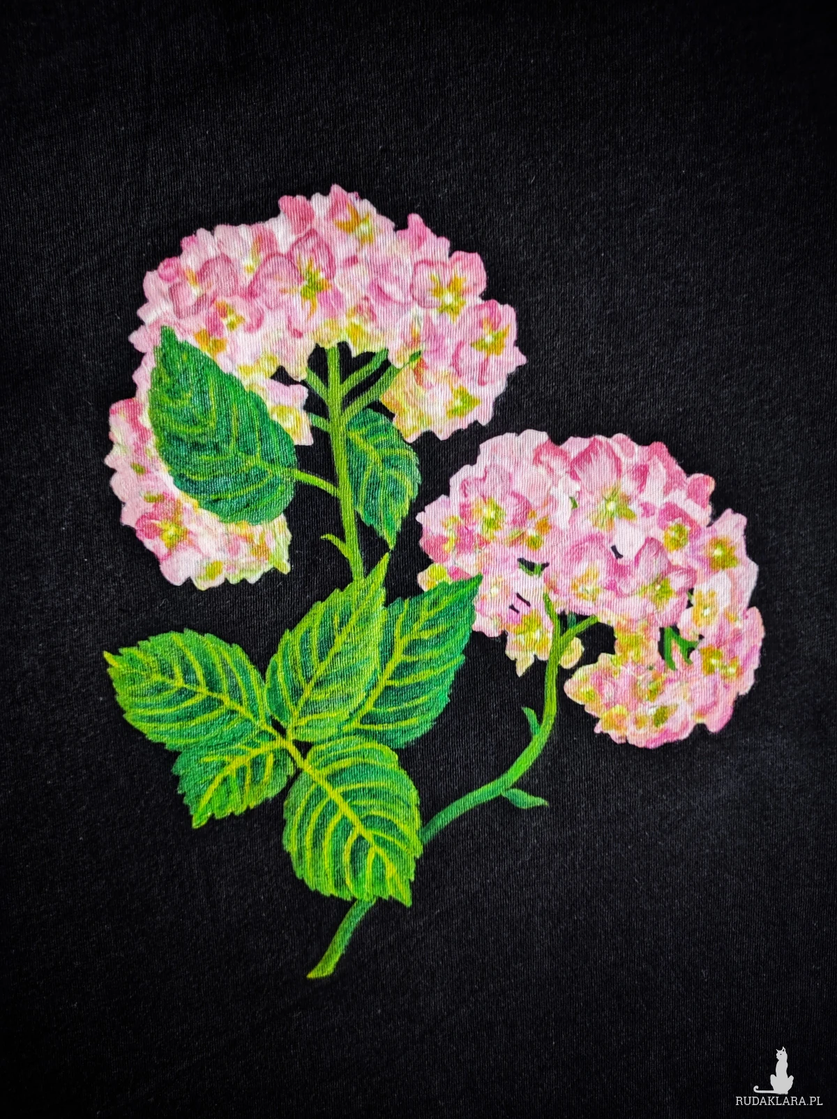Ręcznie malowana (nie nadruk) bawełniana koszulka z motywem kwiatowym. Doskonała jako prezent dla każdej miłośniczki natury i kwiatów. Wzór wykonany został przy użyciu najlepszych farb do tkanin, dzięki czemu jest wodoodporny i trwały.