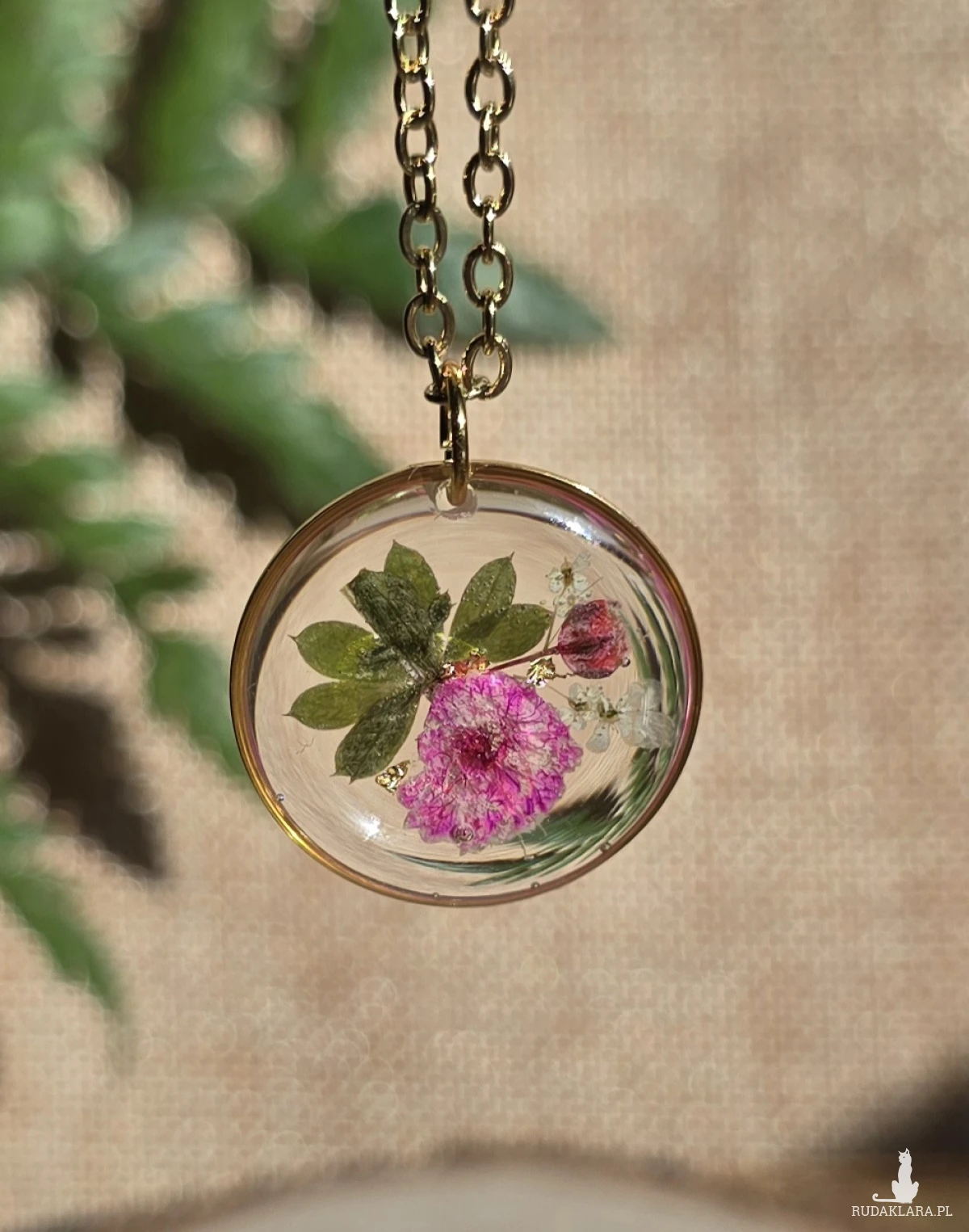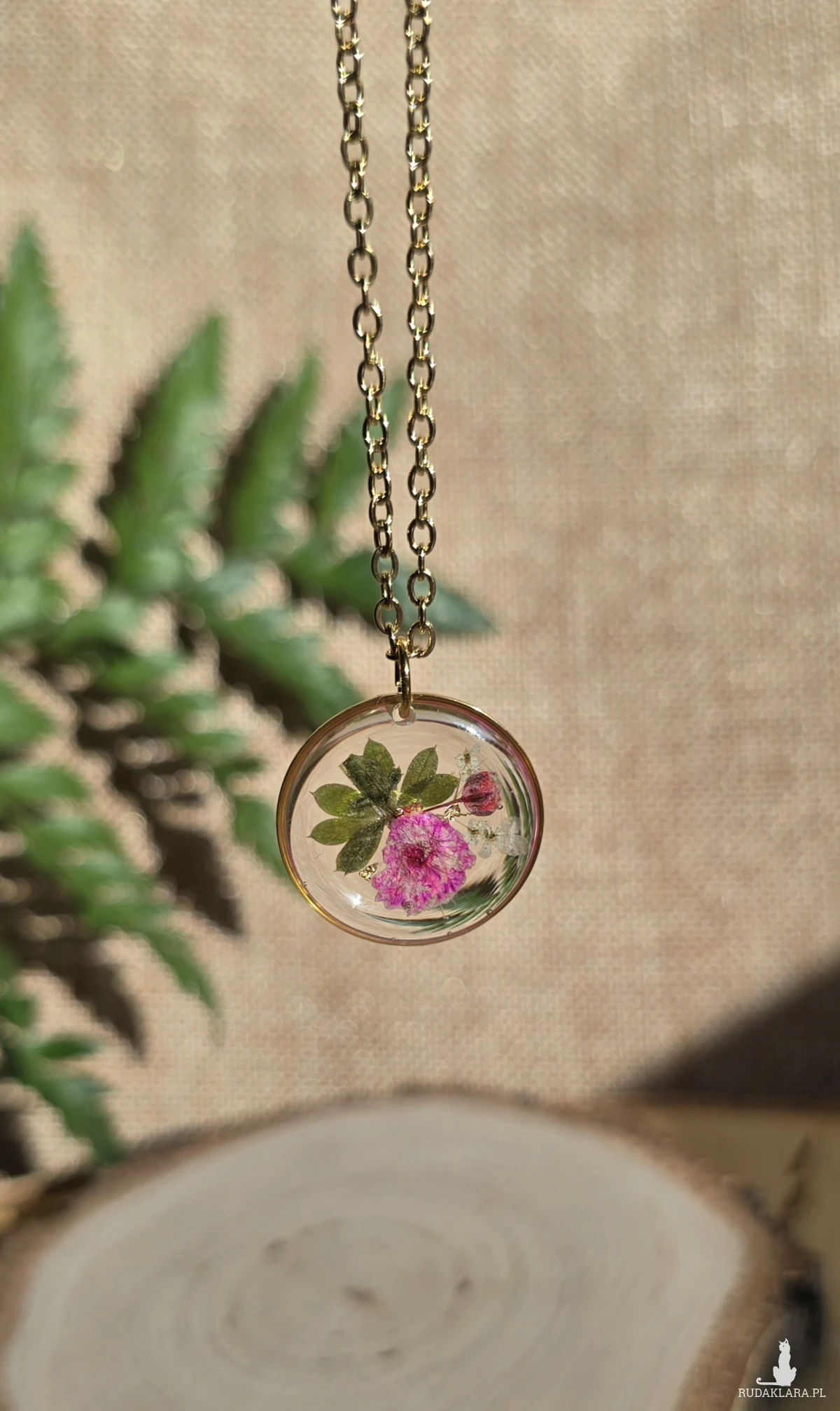 .Oferuję Państwu unikalną biżuterię. Zawieszka jest wykonana z suszonych kwiatów i żywicy epoksydowej. Biżuteria jest wspaniałym i oryginalnym prezentem na lata.