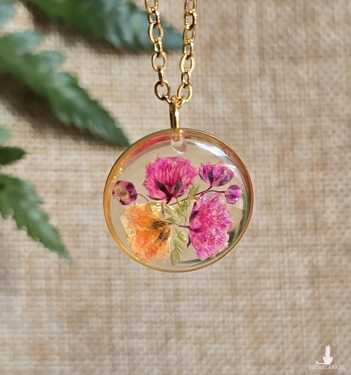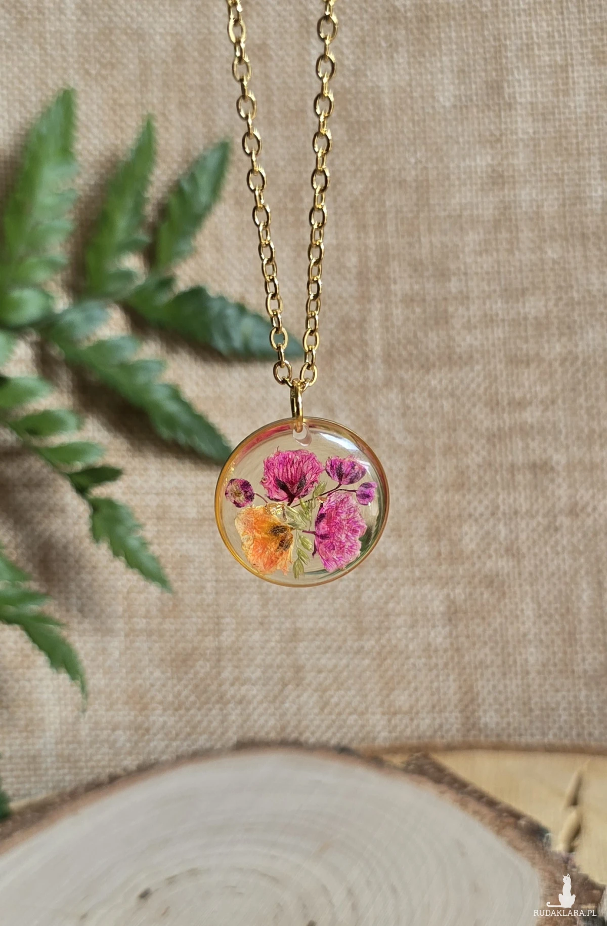 .Oferuję Państwu unikalną biżuterię. Zawieszka jest wykonana z suszonych kwiatów i żywicy epoksydowej. Biżuteria jest wspaniałym i oryginalnym prezentem na lata.