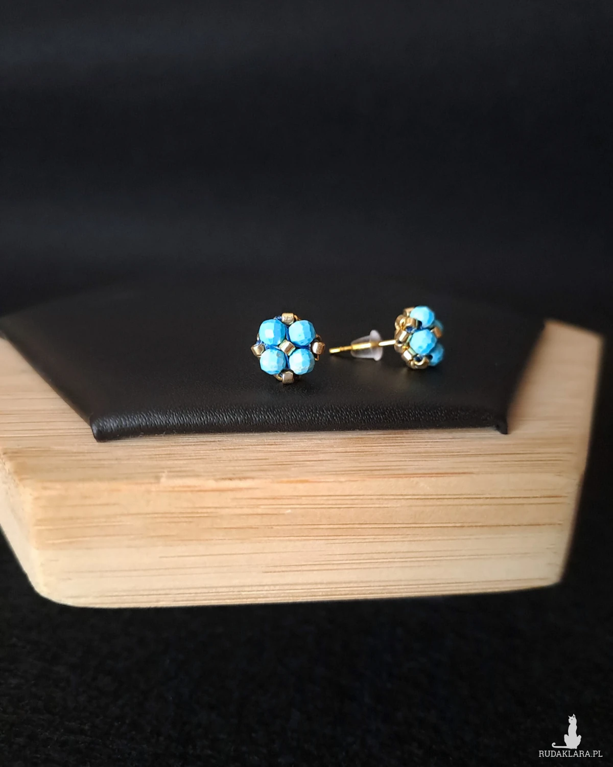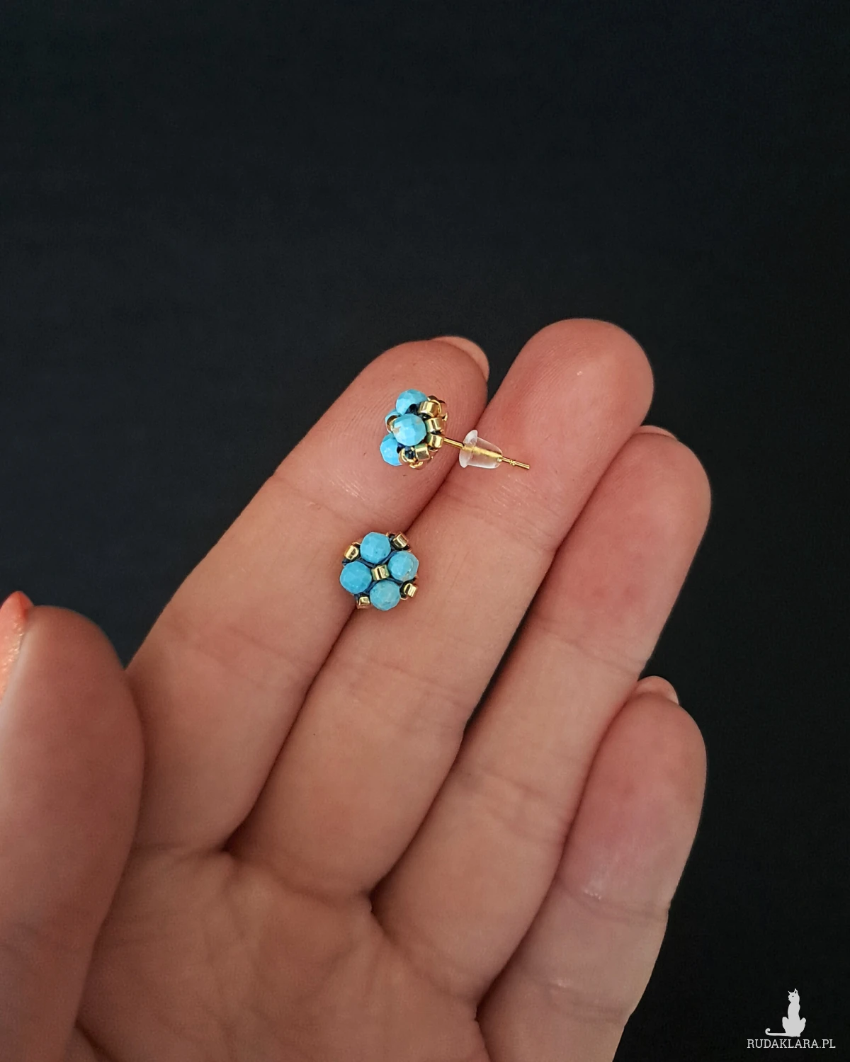 Sztyfty z turkusem zachwycają intensywnym, morskim odcieniem przełamanym naturalnym rysunkiem kamienia. Złota oprawa z koralików Miyuki dodaje im ciepła i elegancji, pięknie podkreślając nasyconą barwę turkusu. To połączenie tworzy wyrazistą, a jednocześnie harmonijną kompozycję, która rozświetla twarz i dodaje stylizacji świeżości. Niewielki rozmiar sprawia, że kolczyki są komfortowe w noszeniu przez cały dzień.