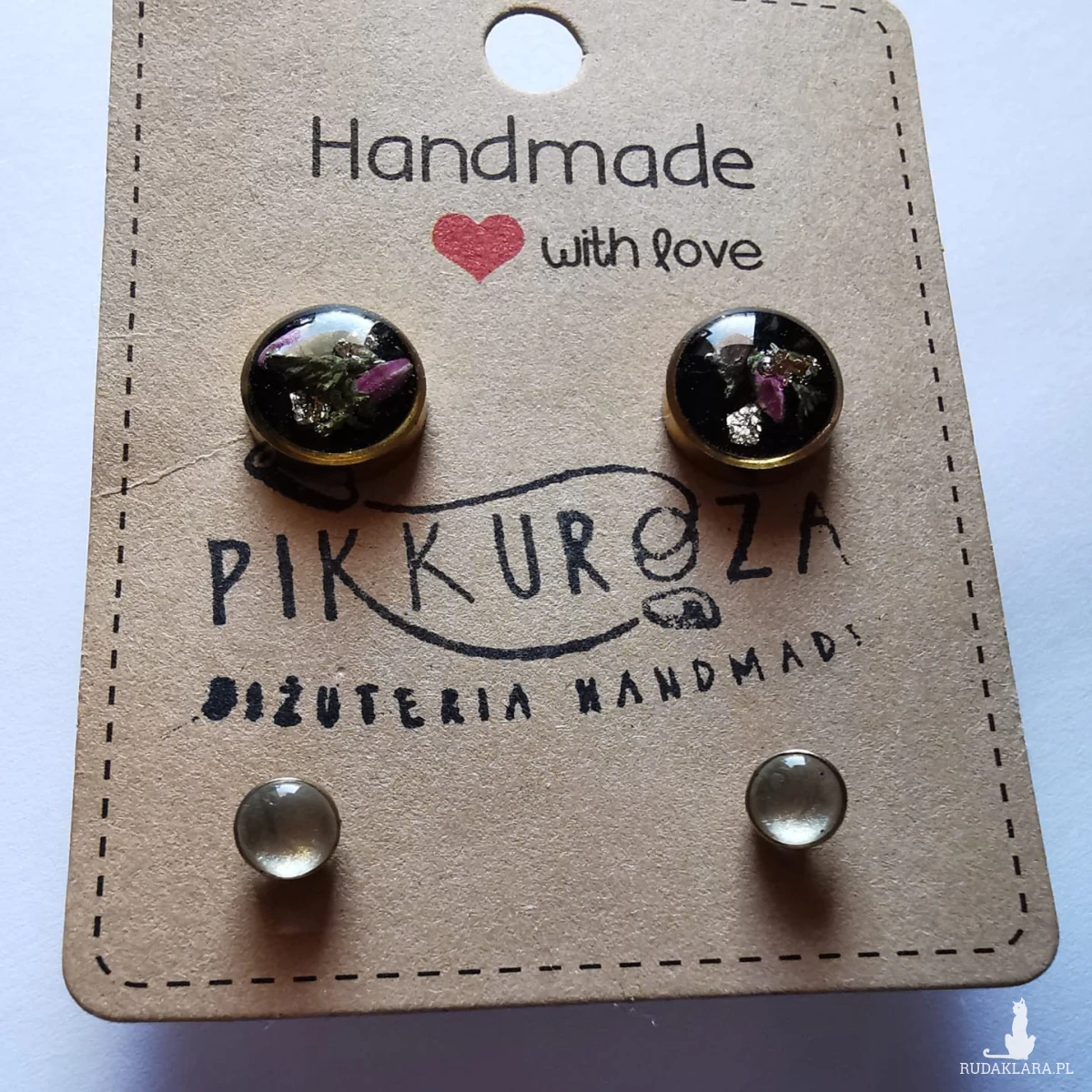 Delikatna, wyjątkowa biżuteria z żywicy. Używam wysokiej jakości dodatków oraz własnoręcznie suszonych kwiatów i zatapiam je w wytrzymałej, dobrej jakości żywicy epoksydowej. Każda sztuka jest tworzona jest ręcznie — niepowtarzalna i jedyna w swoim rodzajuKolory mogą się delikatnie różnić w zależności od kąta padania światła oraz ustawień monitora. Pojedyncze sztuki mogą delikatnie się r...