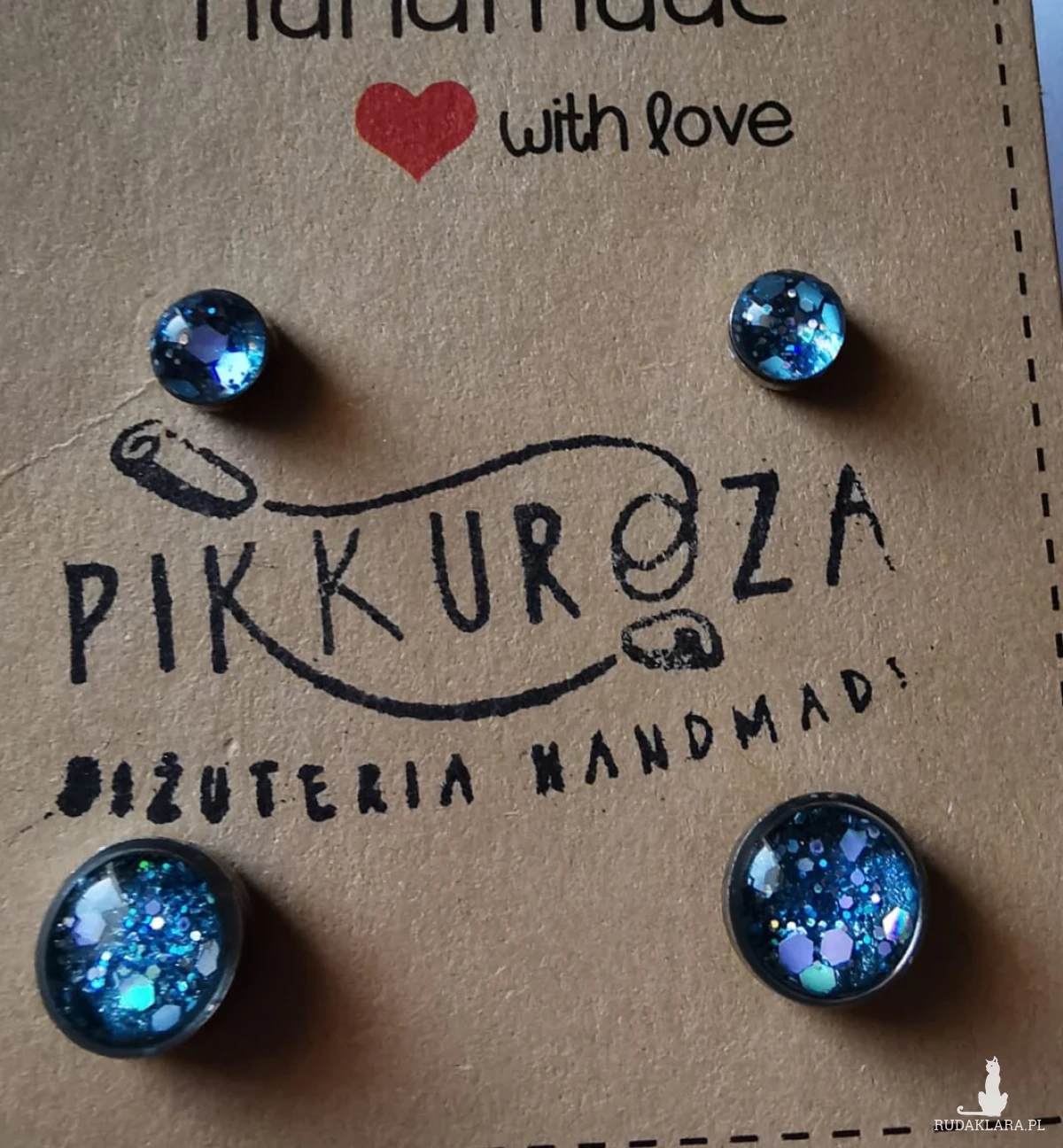Zestaw dwóch par kolczyków z żywicy epoksydowej.