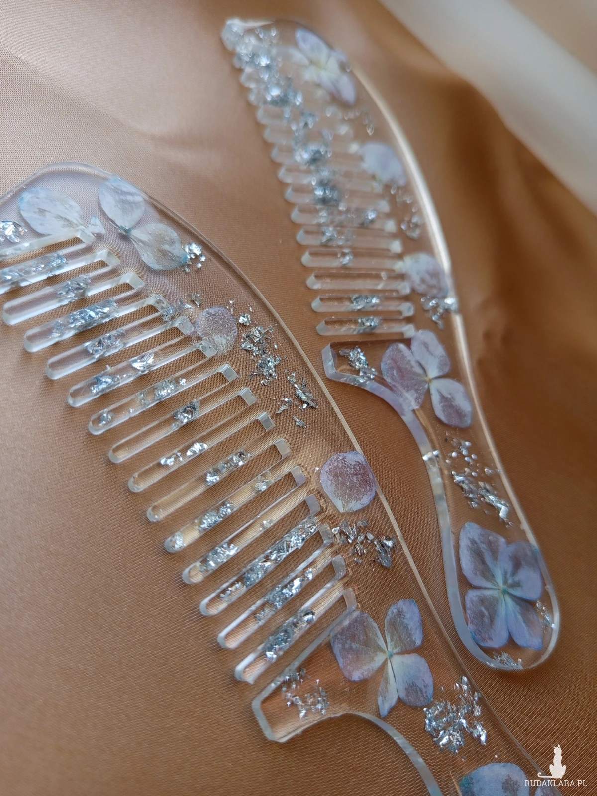 Grzebień z kwiatami hortensji z dodatkiem srebra. 🩵 Pięknie rozczesuje i prezentuje się 🤭