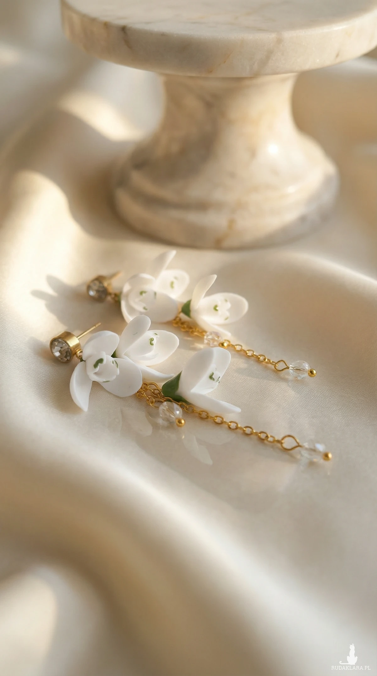 Kolczyki z ręcznie wykonanymi kwiatuszkami z profesjonalnej masy termoutwardzalnej.