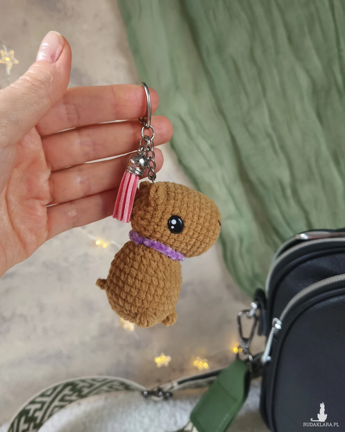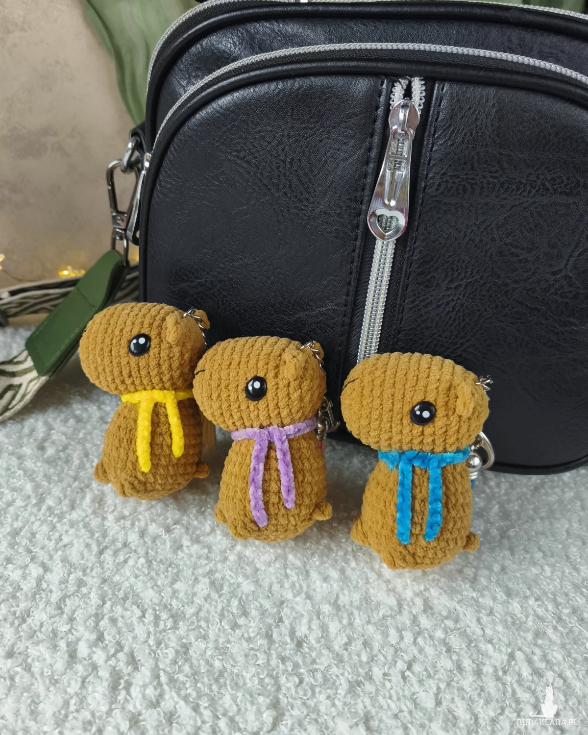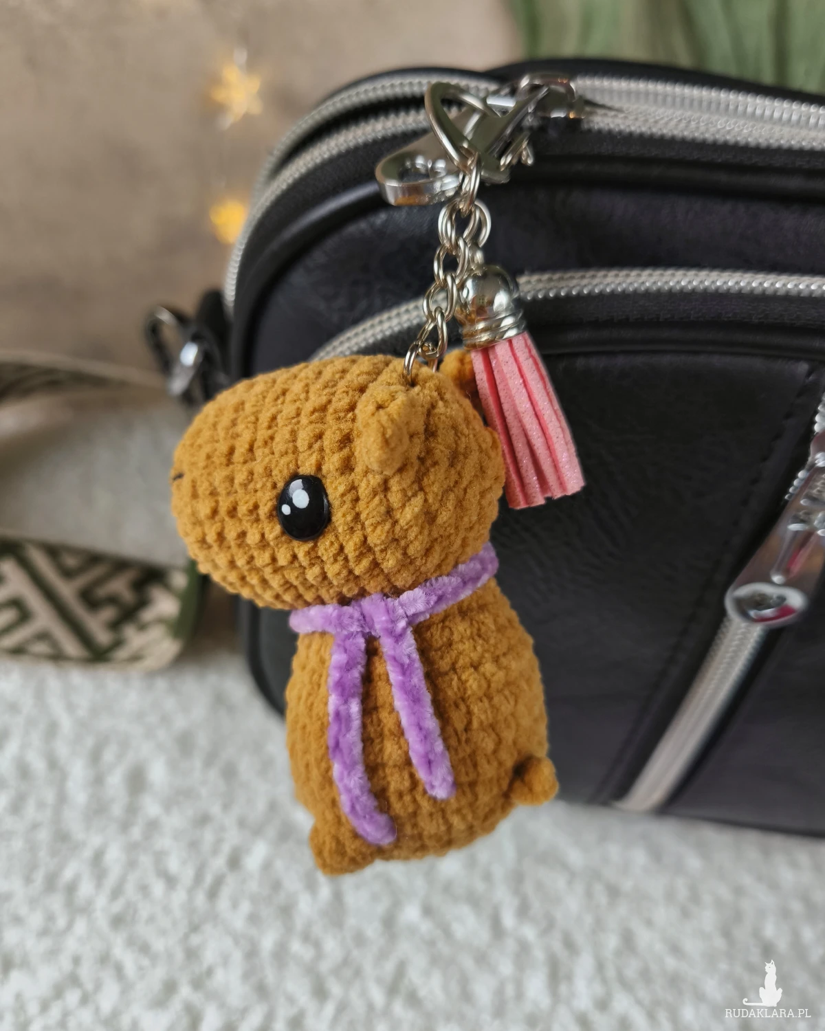Uroczy breloczek kapibara to doskonały dodatek do plecaka/torebki/kluczy oraz wspaniały prezent na każdą okazję i wyjątkowy moment.
