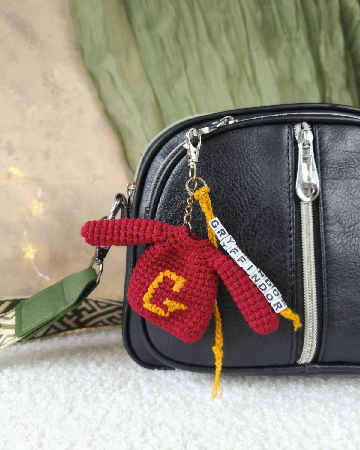 Dodatkowym, wyjątkowym elementem jest pleciony sznurek z nazwą domu szkoły magii "Gryffindor". To detal, który pozwala podkreślić przynależność do ulubionego domu czarodziejów i nadaje brelokowi jeszcze bardziej magiczny charakter.