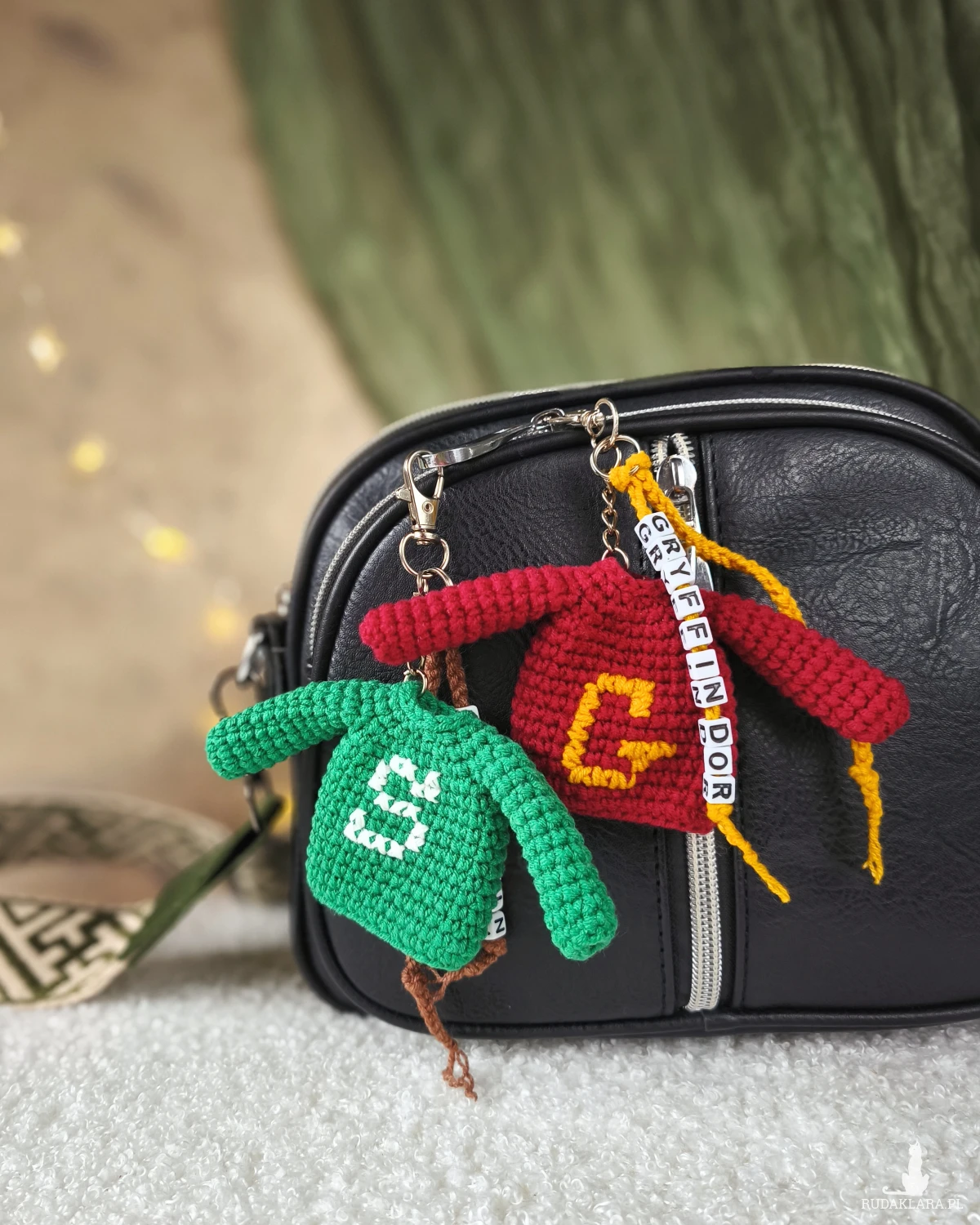 Ręcznie wykonany brelok w kształcie sweterka z literą inspirowany światem magii i fantazji.