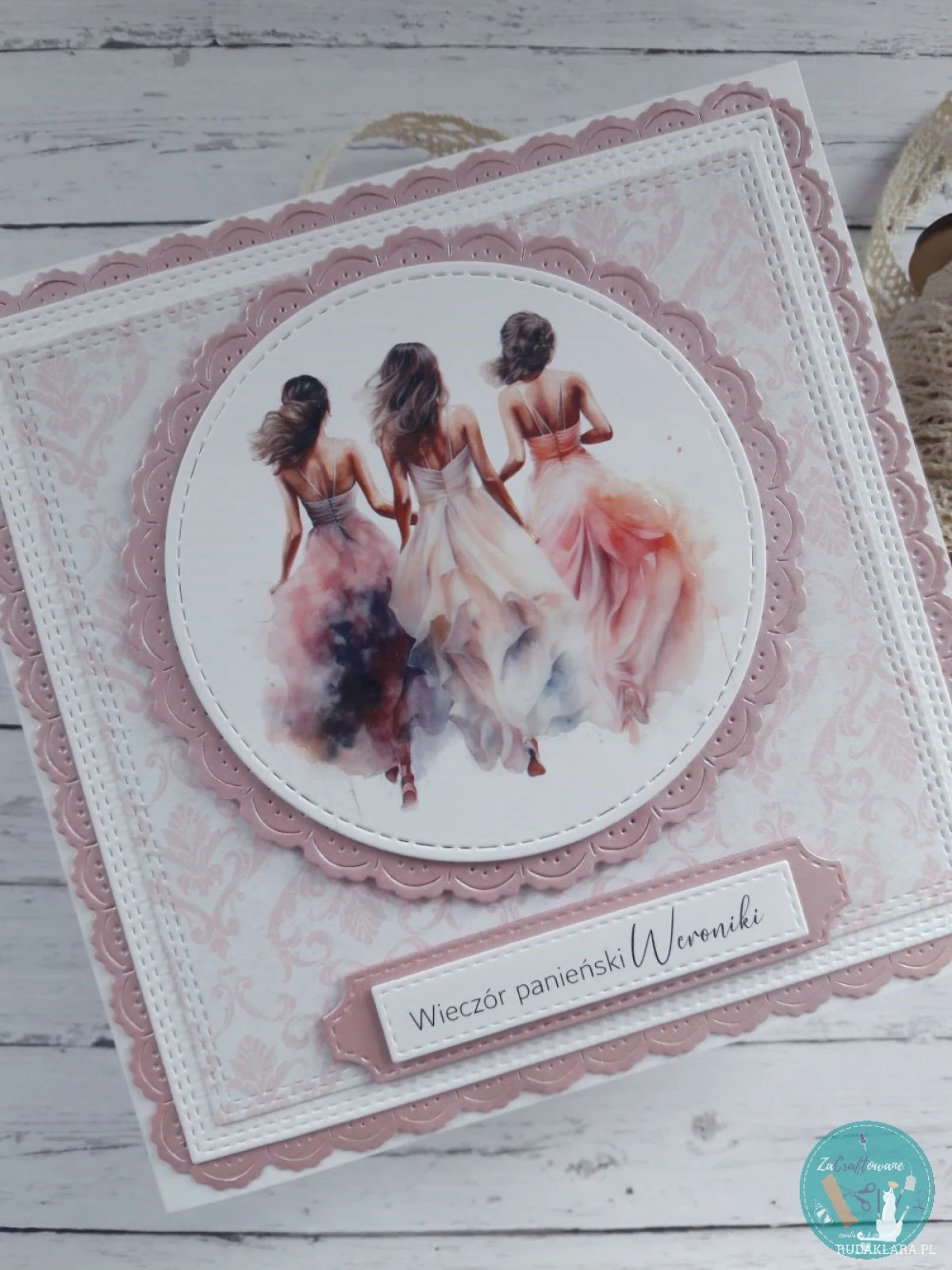 Ręcznie robiona kartka dla przyszłej Panny Młodej wykonana metodą scrapbookingu z wykorzystaniem profesjonalnych materiałów i z dbałością o każdy szczegół.