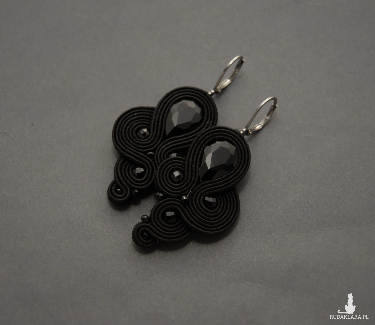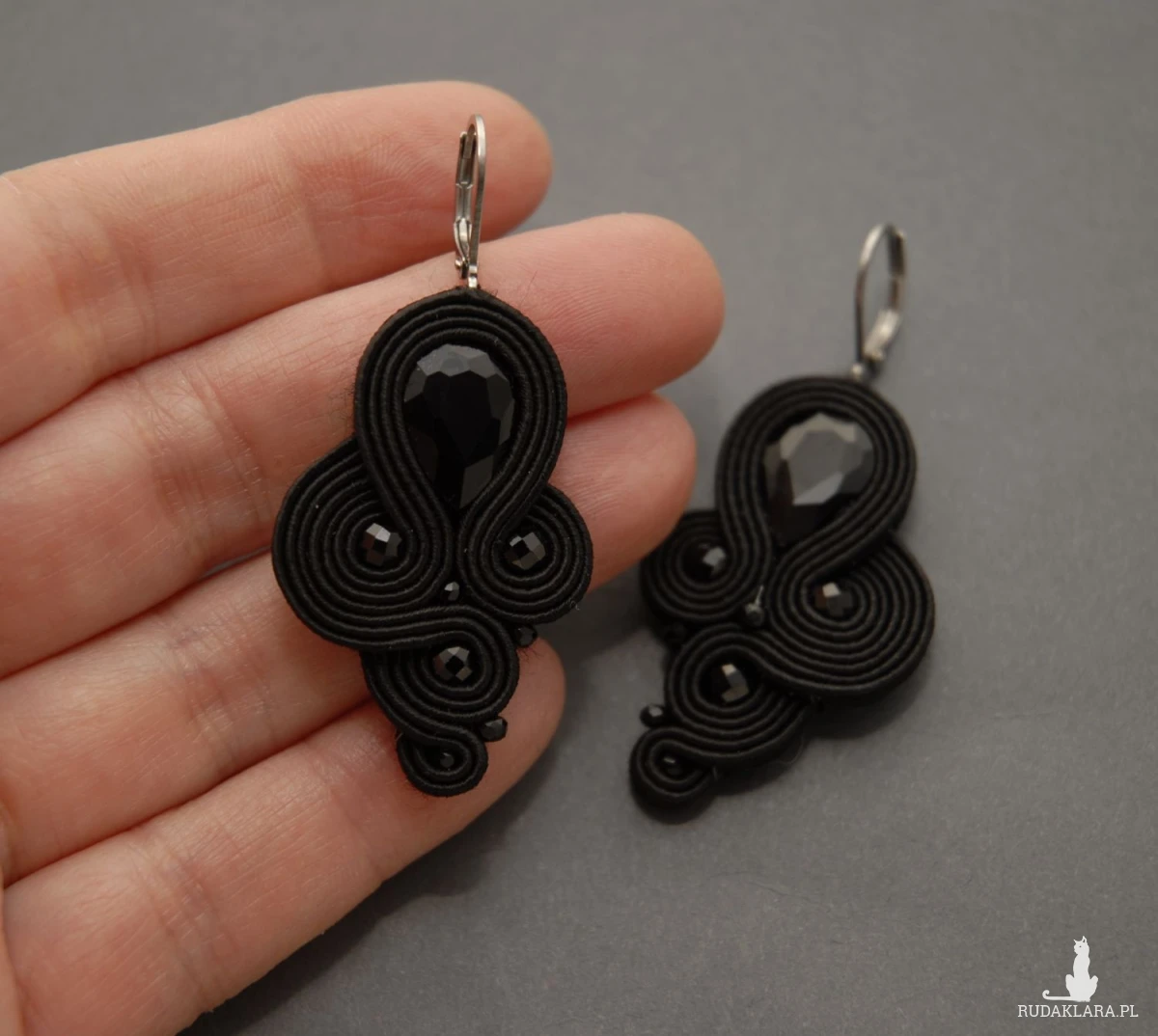 oferuję kolczyki lub klipsy zrobione techniką sutasz, ozdobione fasetowanymi kaboszonami i onyksami