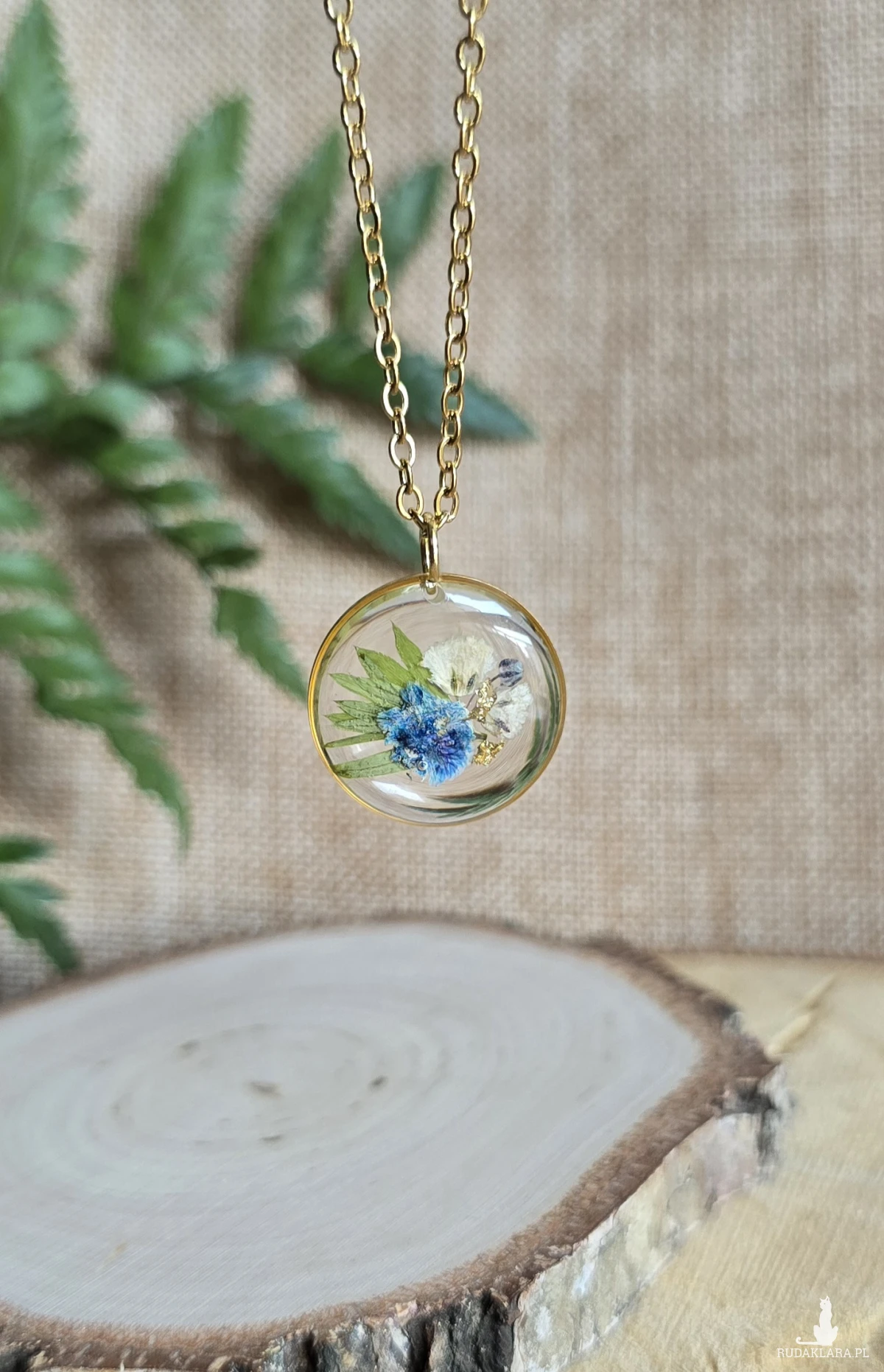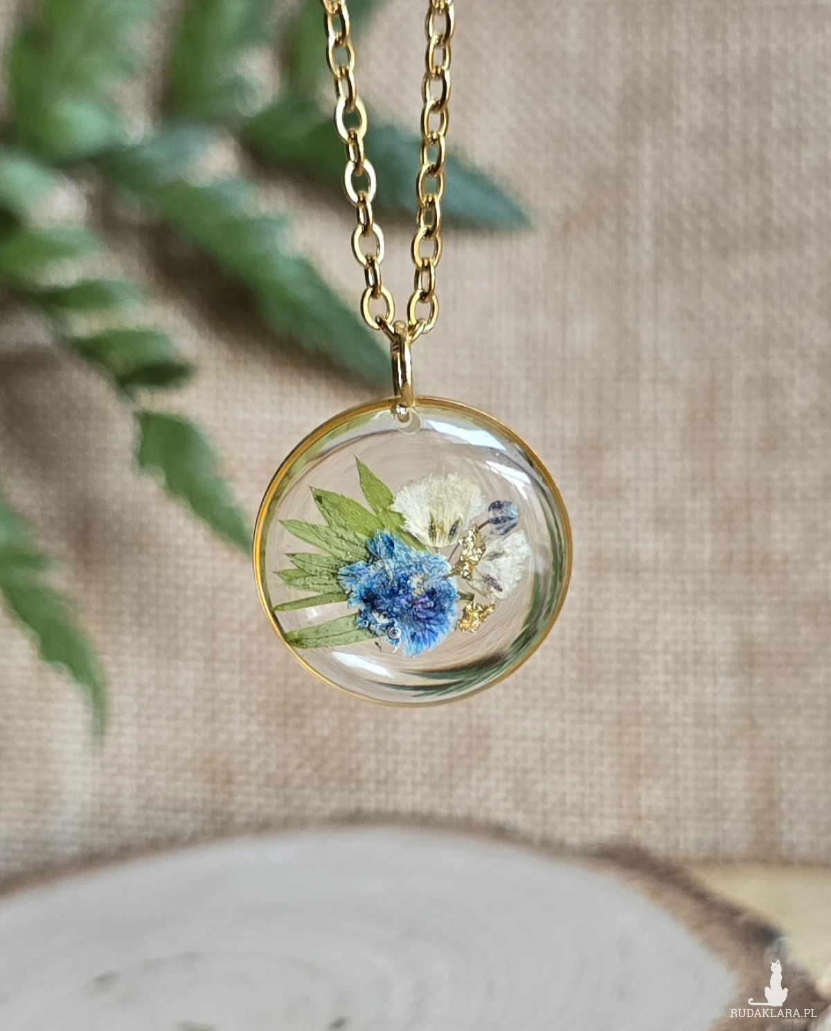 .Oferuję Państwu unikalną biżuterię. Zawieszka jest wykonana z suszonych kwiatów i żywicy epoksydowej. Biżuteria jest wspaniałym i oryginalnym prezentem na lata.