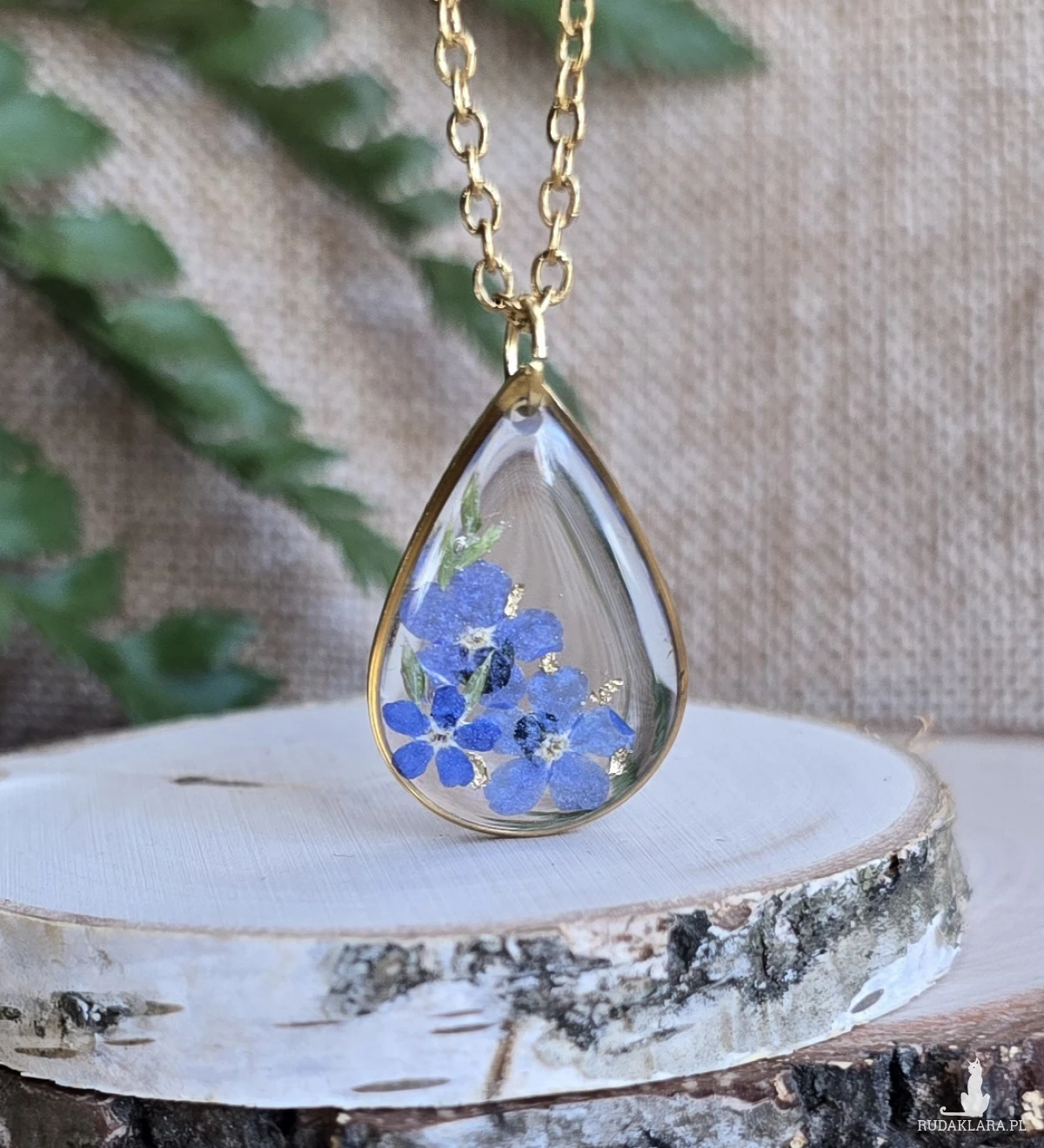 Oferuję Państwu unikalną biżuterię. Zawieszka jest wykonana z suszonych kwiatów i żywicy epoksydowej. Biżuteria jest wspaniałym i oryginalnym prezentem na lata.