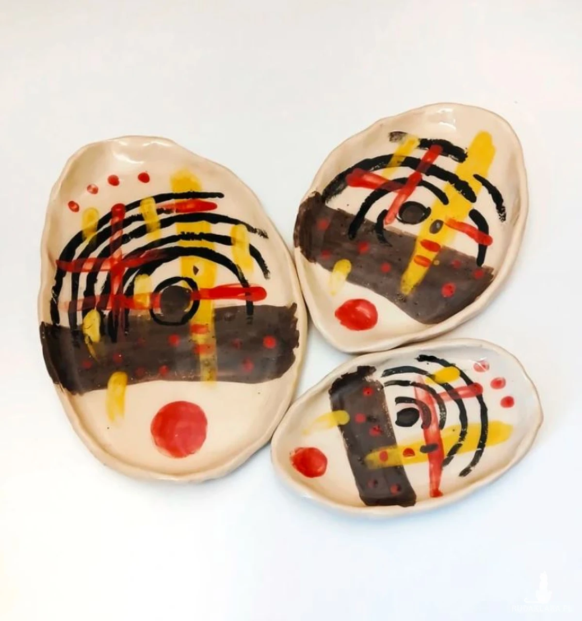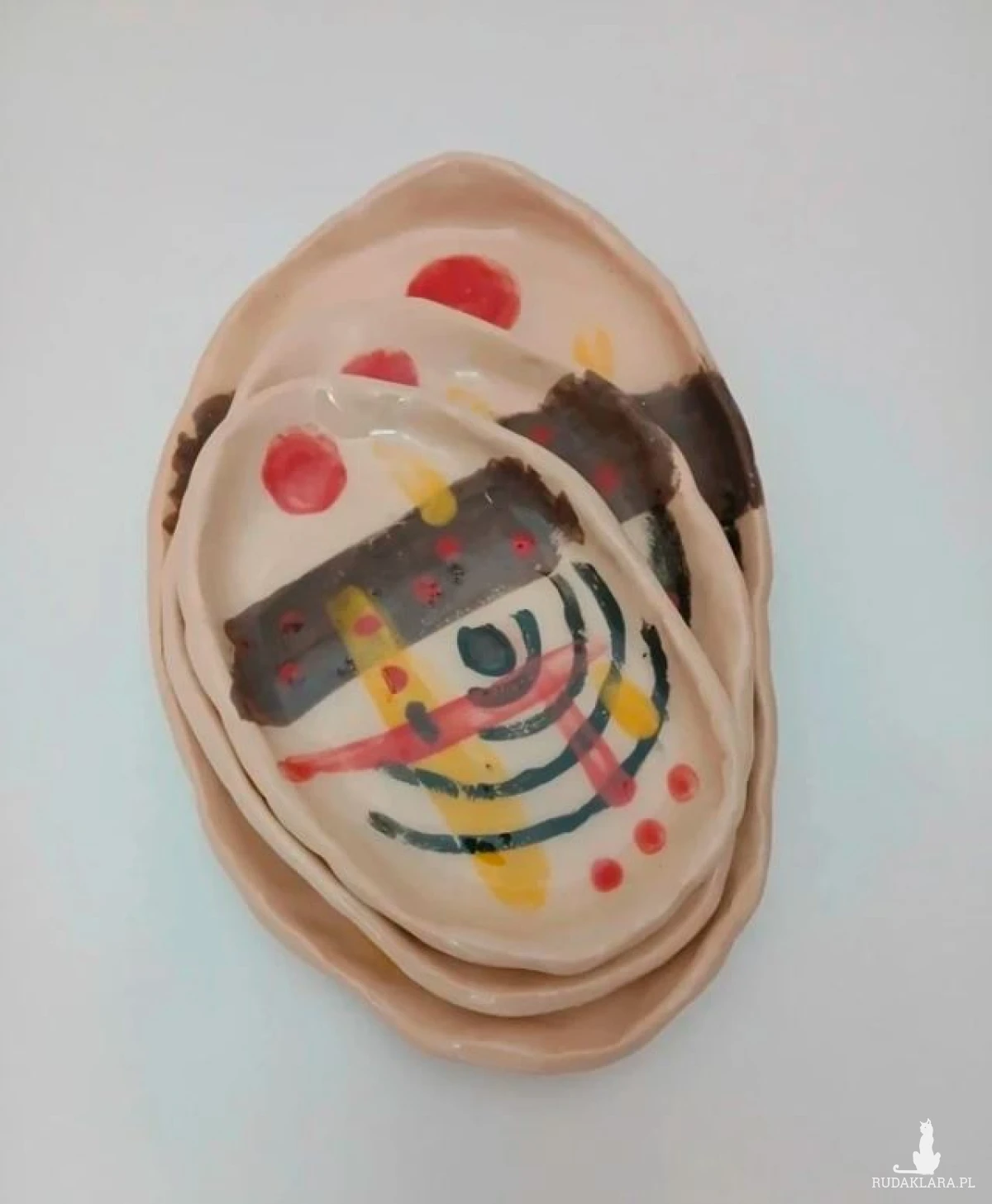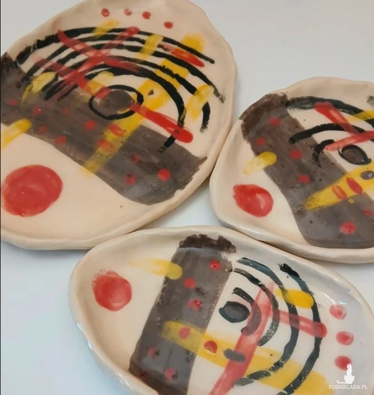 Artystyczne ręcznie lepione talerzyki idealne do serwowania np tapas (oliwki, ser, szynka) czy sushi, podkładki ceramiczne, gliniane półmiski, ręcznie malowane. Autorski wzór kolorowe grafitti dopamine murano picasso cubizm. Mały 9x15cm Średni 12x18cm Duży 15x24cm Unikat rękodzieło studio pottery rzemiosło artystyczne sztuka ludowa grafitti urban collection ceramics zestaw do sushi serving platters plates saucers tapas serving plates