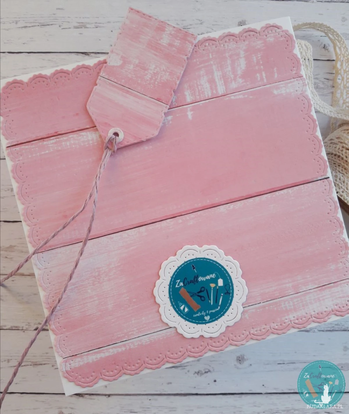 Do kartki dołączam GRATIS w postaci widocznej na zdjęciu etykietki, za pomocą której można podpisać upominek dla solenizantki i przyczepić ją do wstążki, którą obwiązany jest prezent, za pomocą sznureczka, który również znajduje się w zestawie.