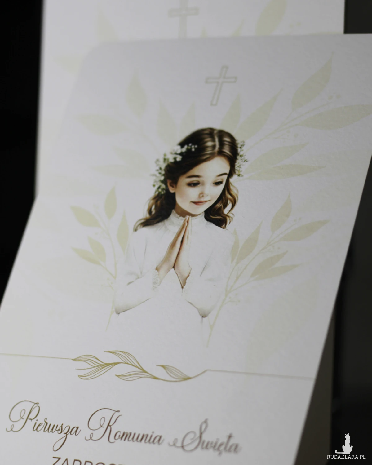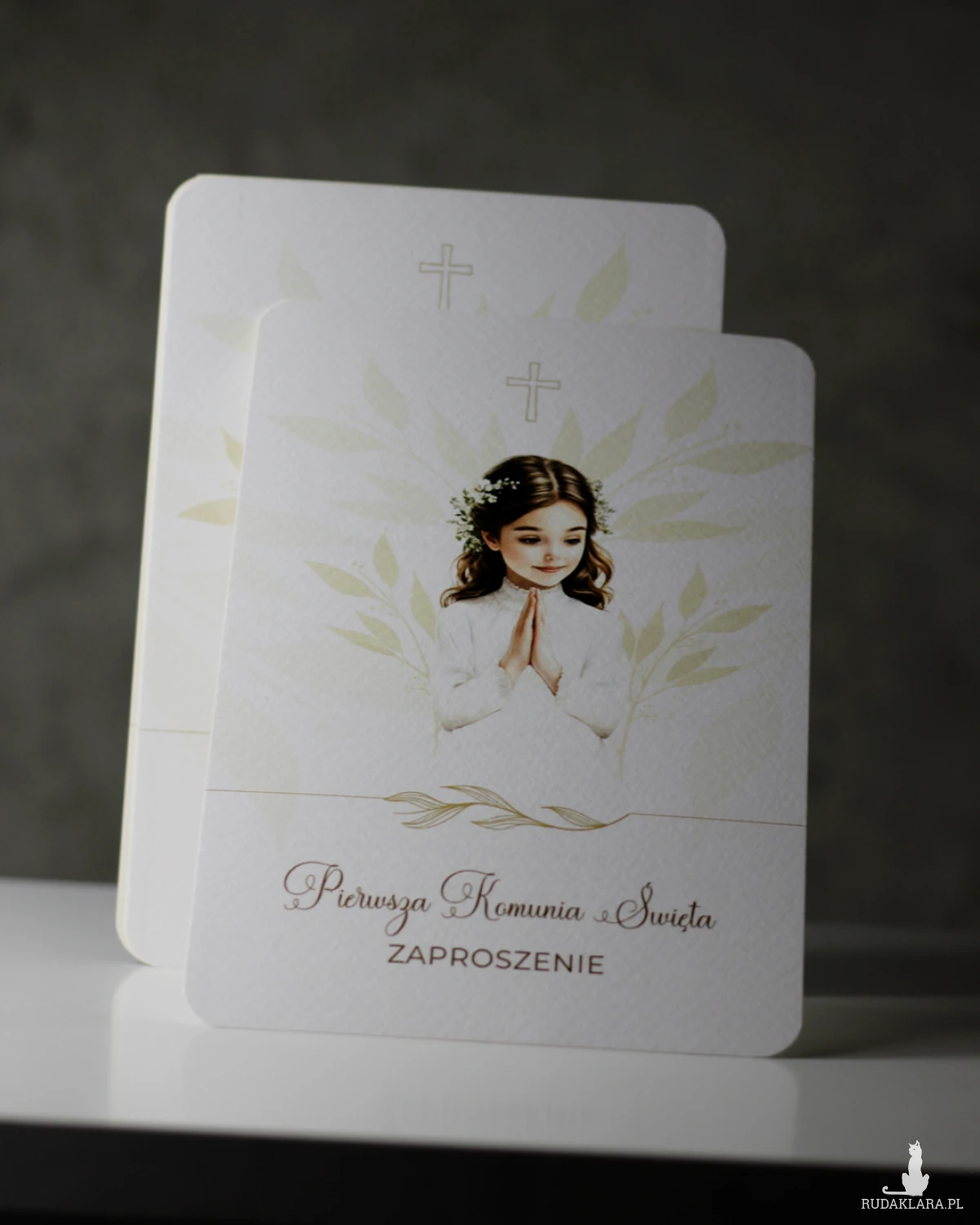 Format zaproszenia 12x17cm. Wydruk dwustronny na papierze ozdobnym o gramaturze 250g o delikatnej fakturze.