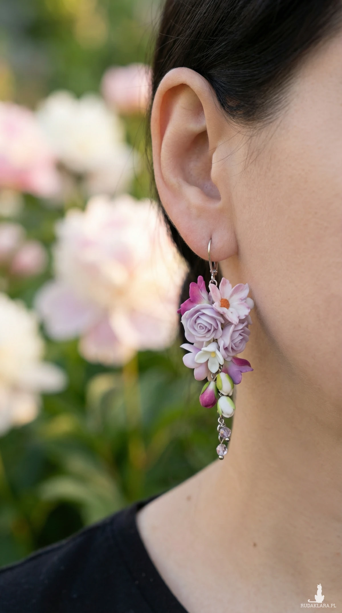Piękne, kolorowe kolczyki z różnorodnymi kwiatami.