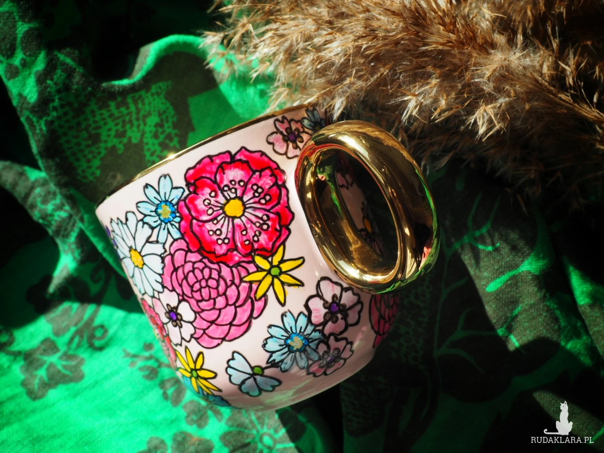 Wzór wykonany został przy użyciu nietoksycznych farb do porcelany, jest wodoodporny - naczynie może być myte ręcznie, bez użycia ostrych narzędzi.