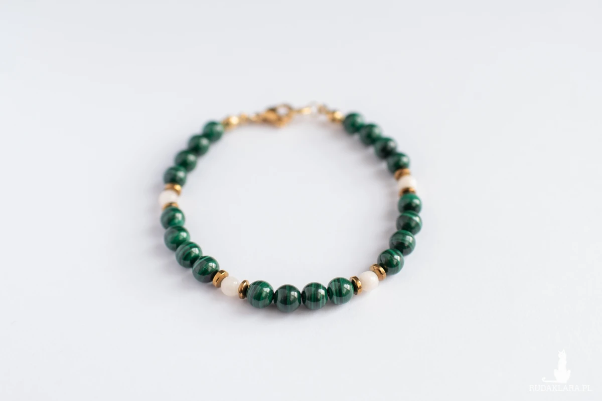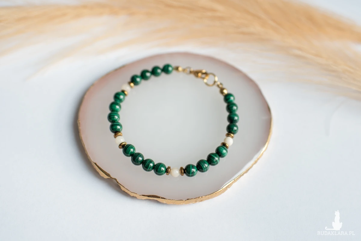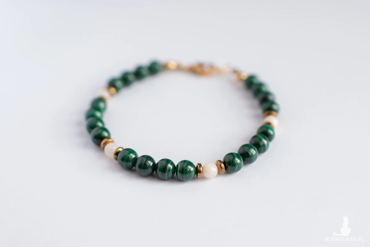 Malachit zachwyca intensywną, nasyconą zielenią z charakterystycznymi, falistymi wzorami. Ceniony jest za silne właściwości ochronne, transformujące i lecznicze.