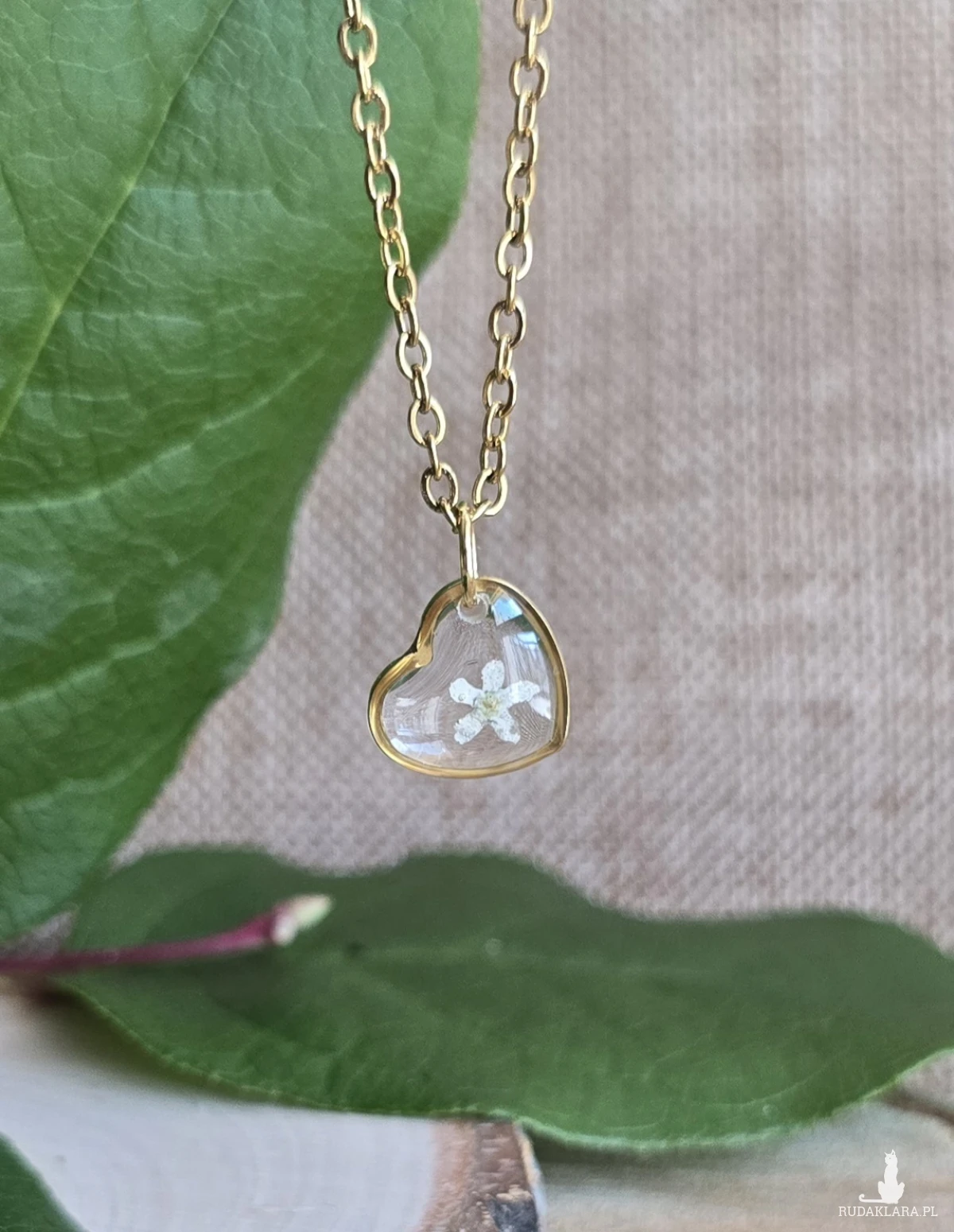 Oferuję Państwu unikalną biżuterię. Zawieszka jest wykonana z suszonych kwiatów i żywicy epoksydowej. Biżuteria jest wspaniałym i oryginalnym prezentem na lata.