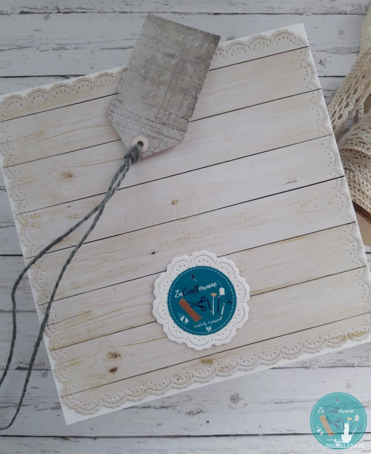 Do kartki dołączam GRATIS w postaci widocznej na zdjęciu etykietki, za pomocą której można podpisać upominek dla solenizantki i przyczepić ją do wstążki, którą obwiązany jest prezent, za pomocą sznureczka, który również znajduje się w zestawie.