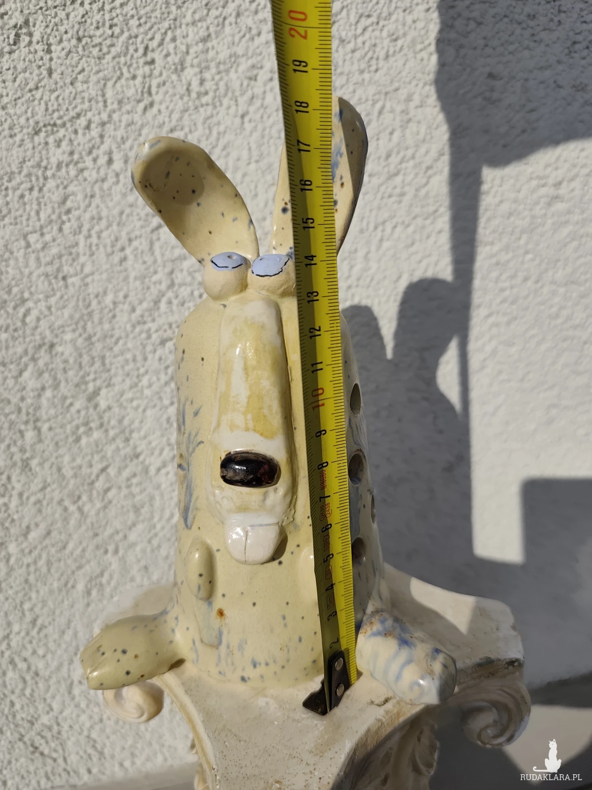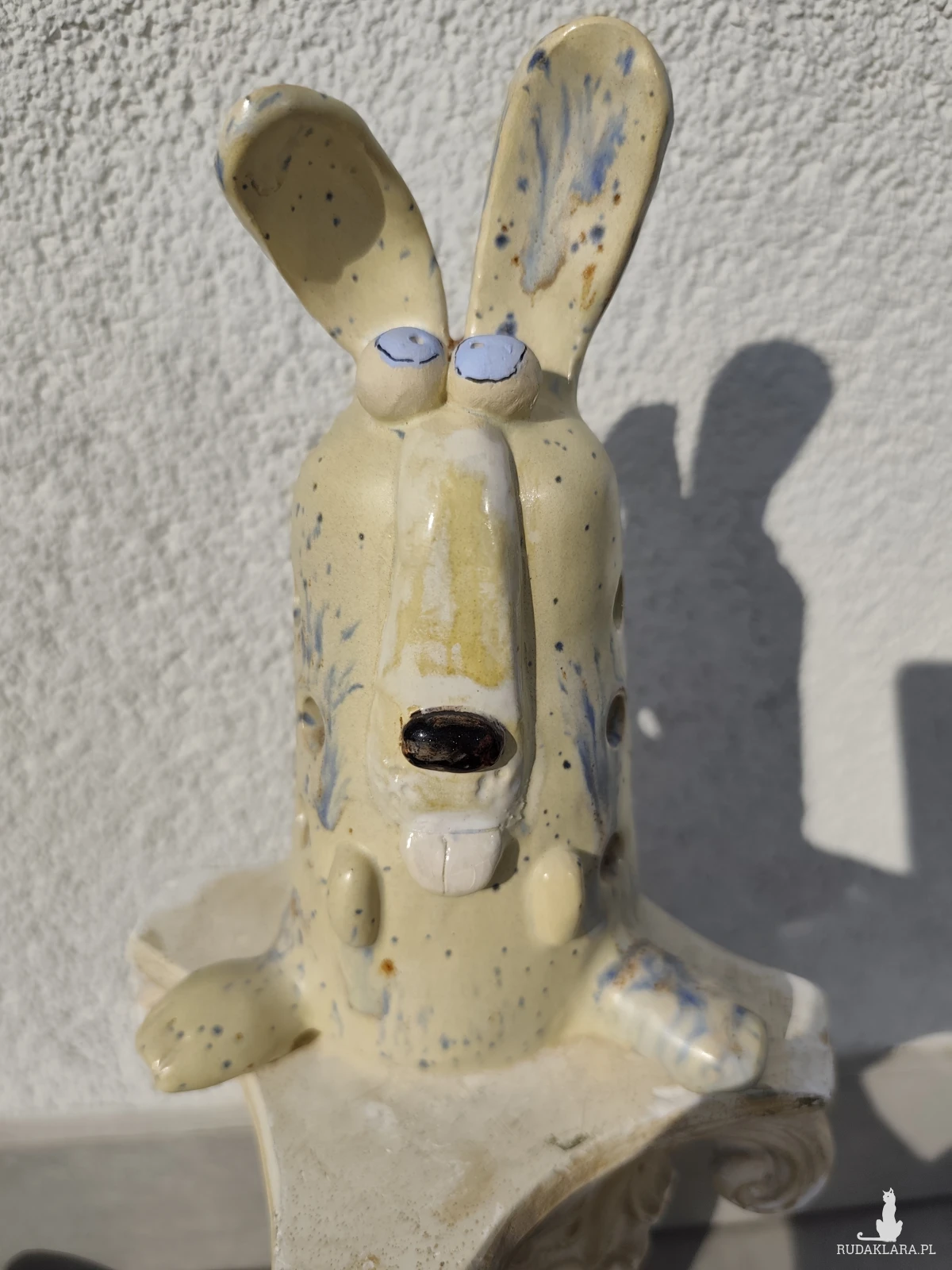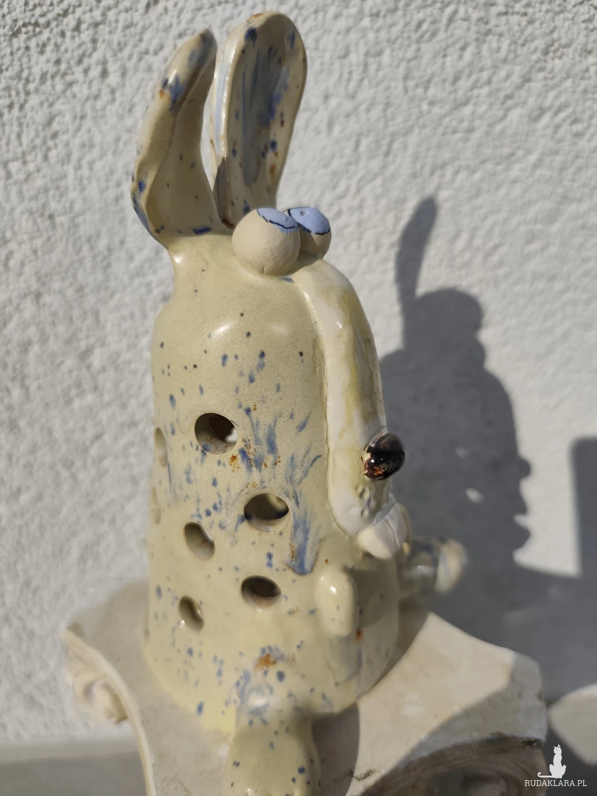 Królik ceramiczny lampion, ręcznie wykonany, szkliwiony i dwukrotnie wypalany w piecu ceramicznym na wysoką temperaturę.