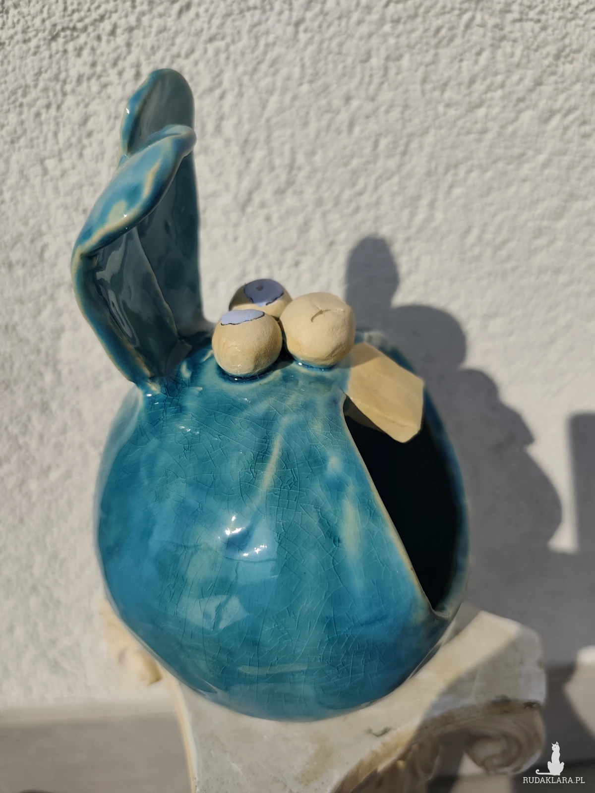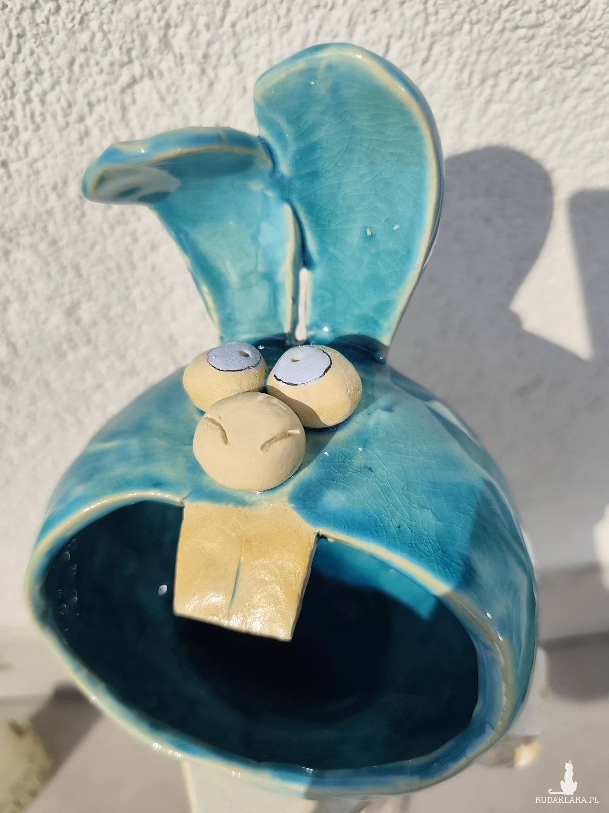 Królik ceramiczny miseczka na słodycze, ręcznie wykonany, szkliwiony i dwukrotnie wypalany w piecu ceramicznym na wysoką temperaturę.