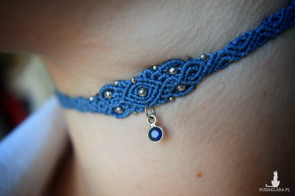 Ręcznie wykonany choker w technice mikro makramy z zawieszką z szafiru.🔮
