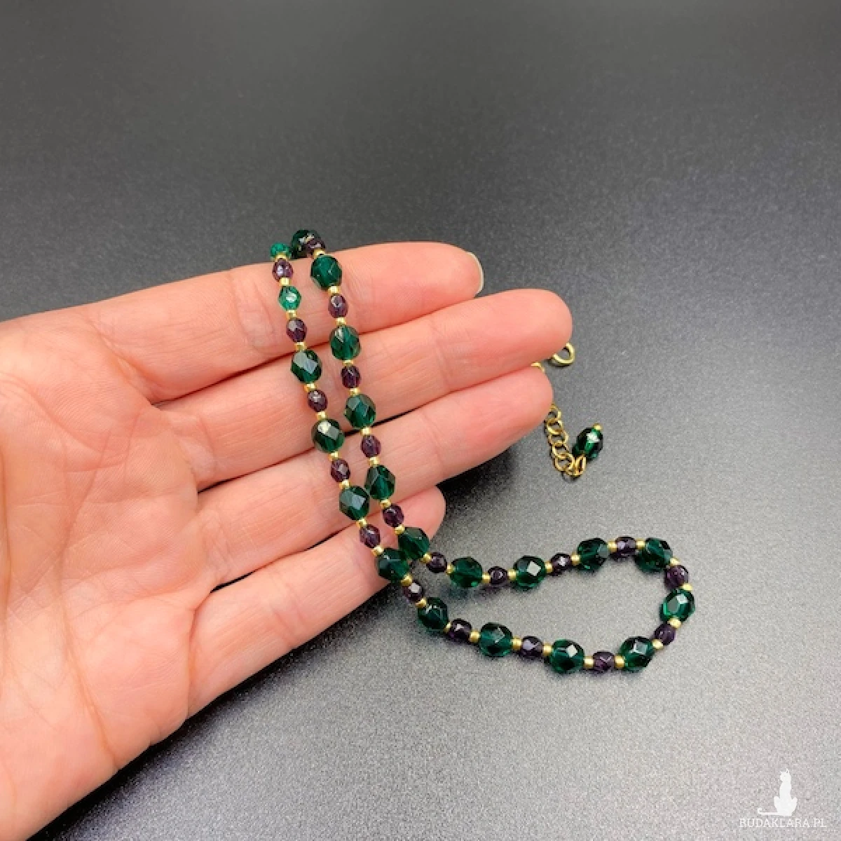 Kolory: butelkowa zieleń, fioletowy, złoty.