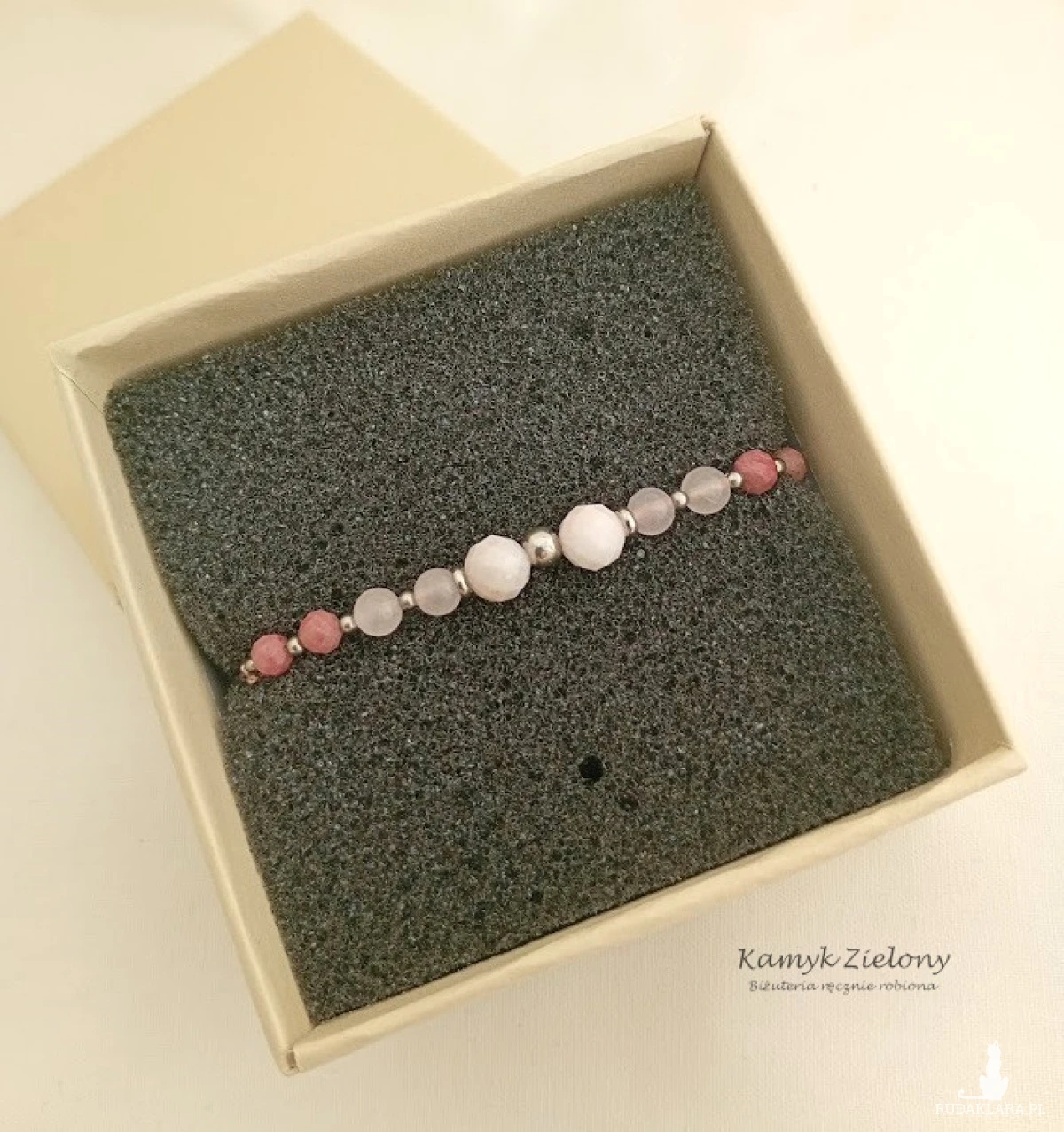 Bransoletka jest sprzedawana w ozdobnym pudełeczku z welurową wkładką.
