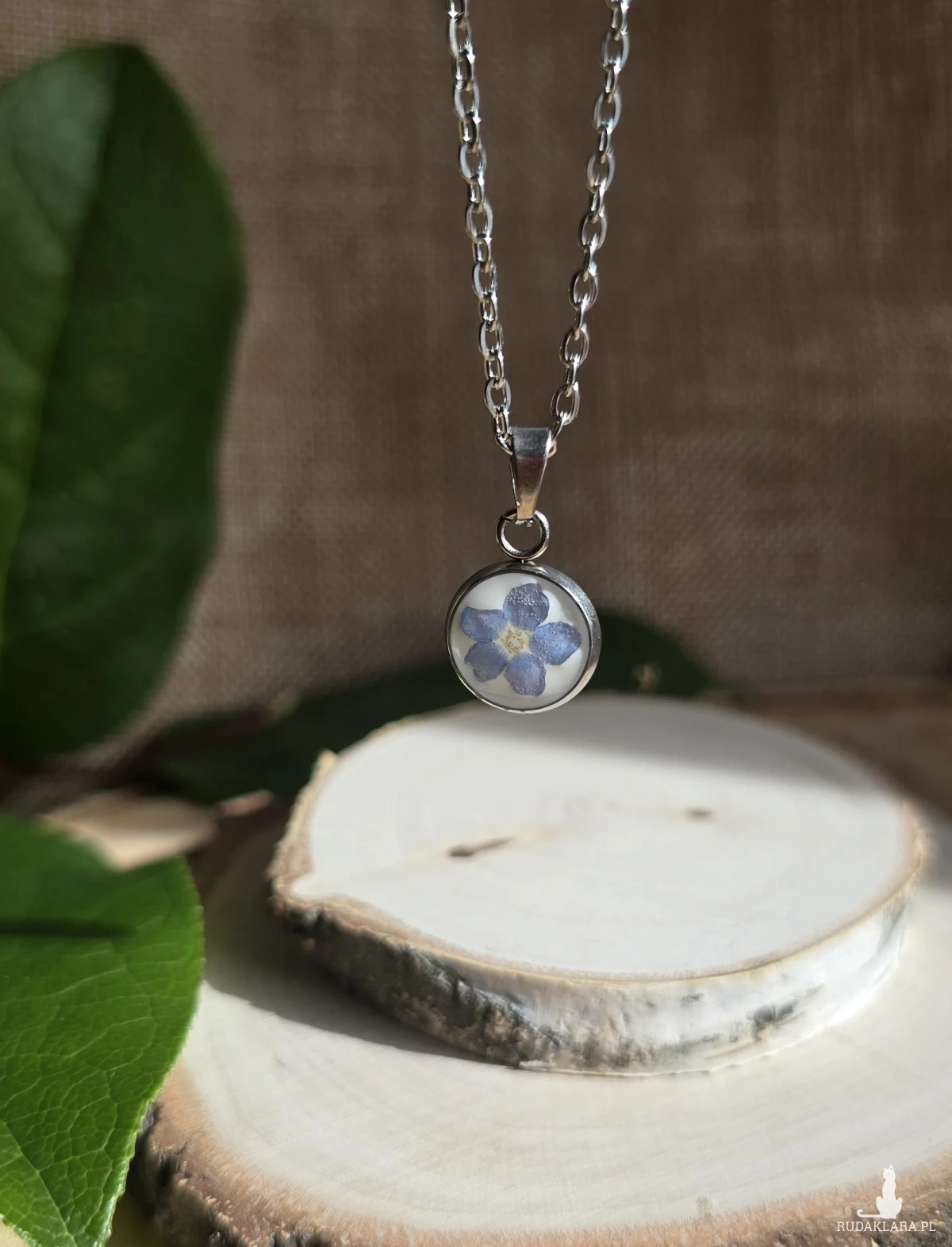 Oferuję Państwu unikalną biżuterię. Zawieszka jest wykonana z suszonych kwiatów i żywicy epoksydowej. Biżuteria jest wspaniałym i oryginalnym prezentem na lata.