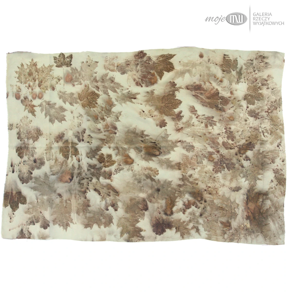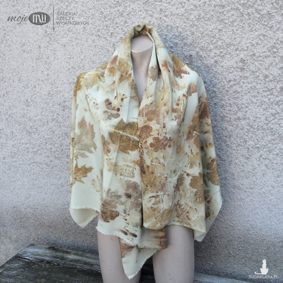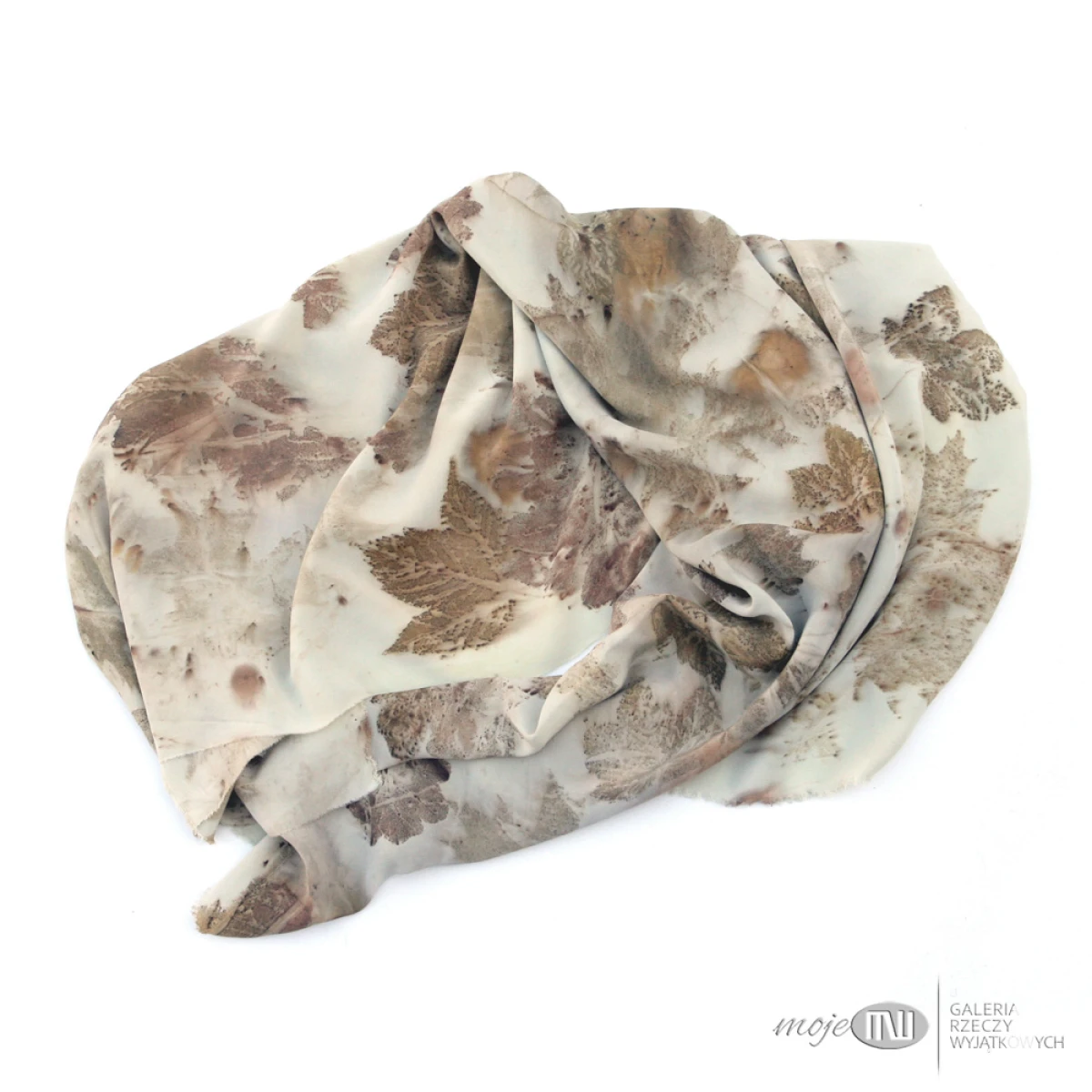 Ten szal jest z cienkiego jedwabiu barwionego m.in. liśćmi klonu oraz dębu.