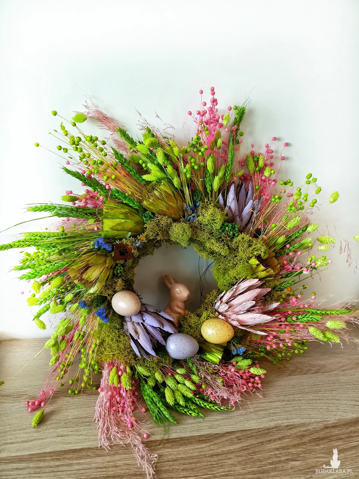 wianek wielkanocny na drzwi, wianek wielkanocny handmade, wianek wiosenny na drzwi, dekoracja wielkanocna na drzwi, wianek z suszonych kwiatów, wianek boho wielkanocny, dekoracja wielkanocna do domu, wianek z zajączkiem, wianek wiosenny boho, naturalny wianek wielkanocny
