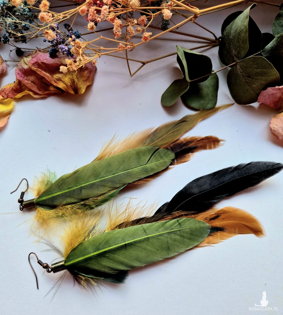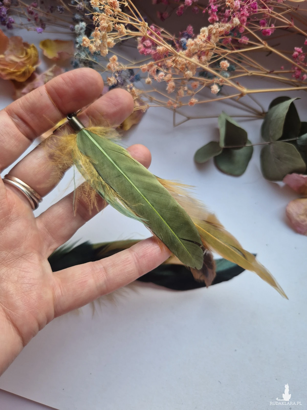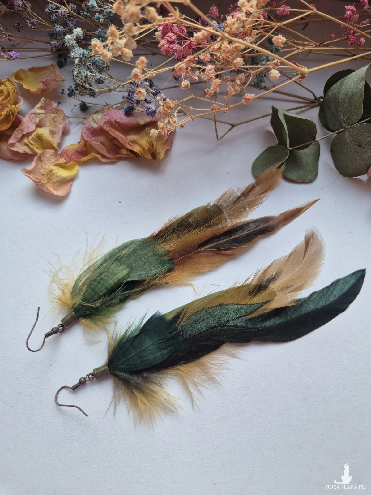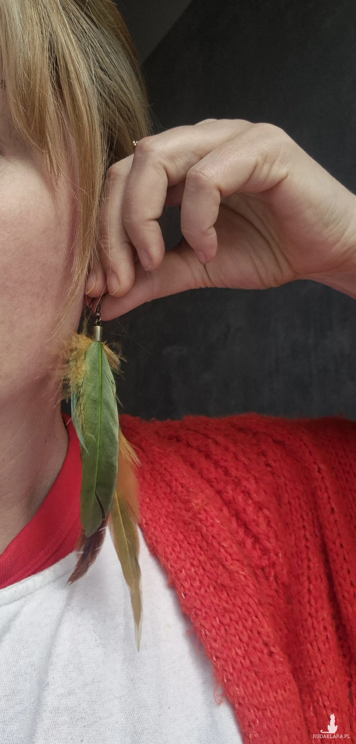Kolczyki leciutkie zielone pióra rękodzieło polecam