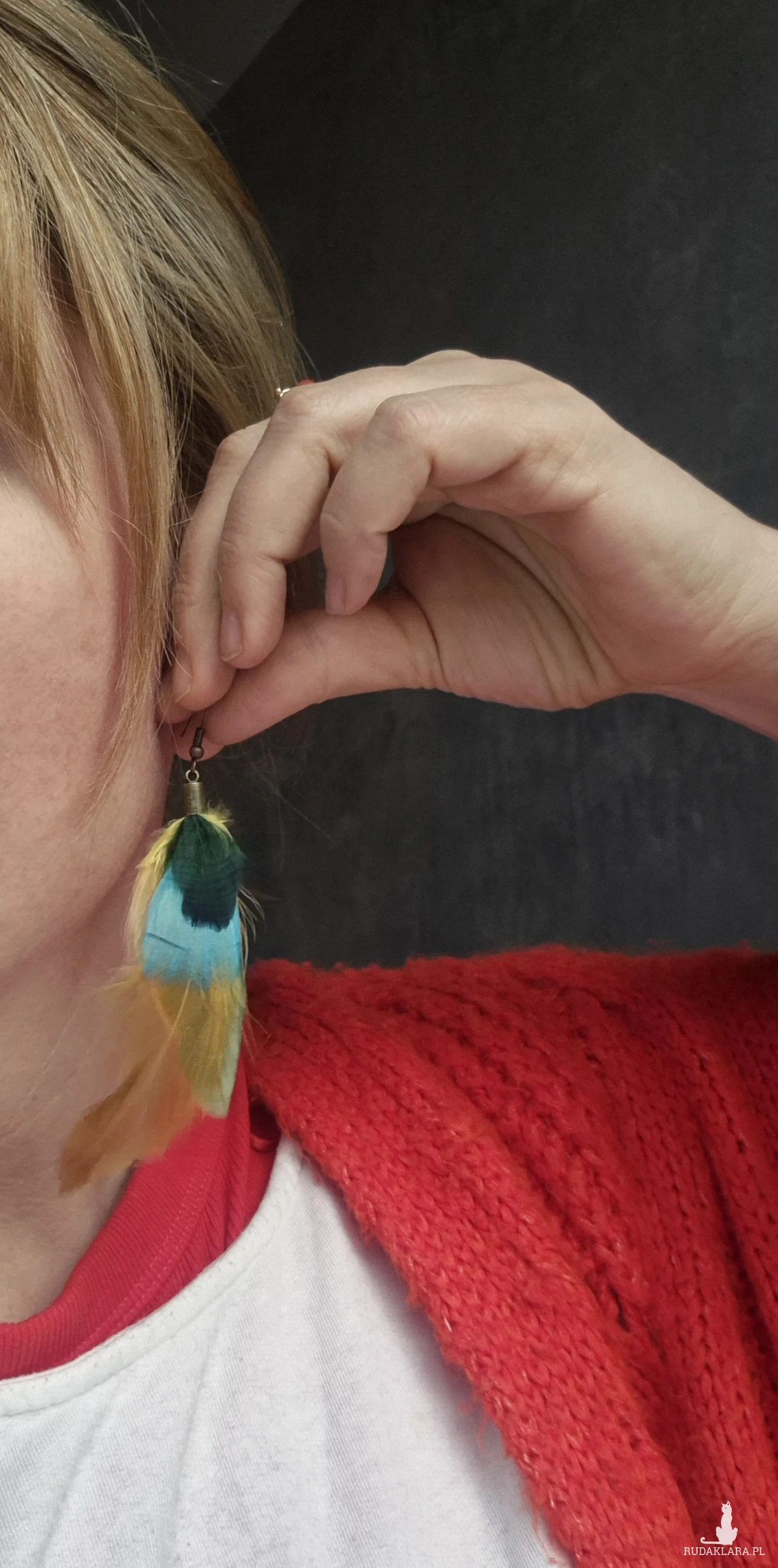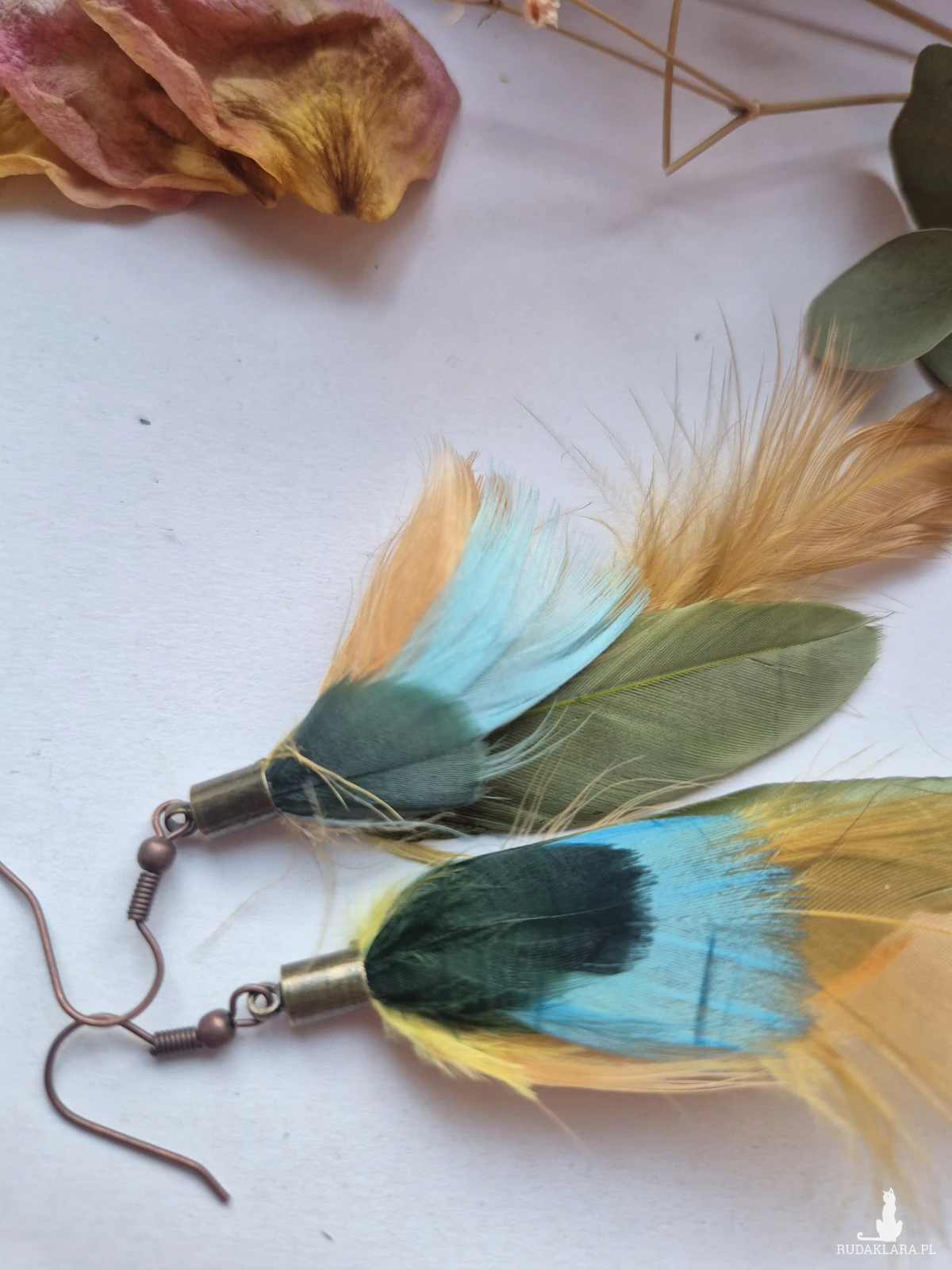 Kolczyki leciutkie zielone pióra rękodzieło polecam