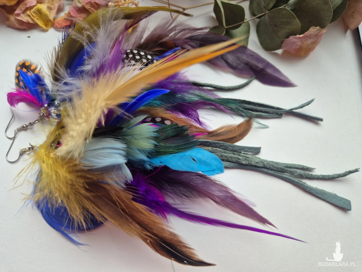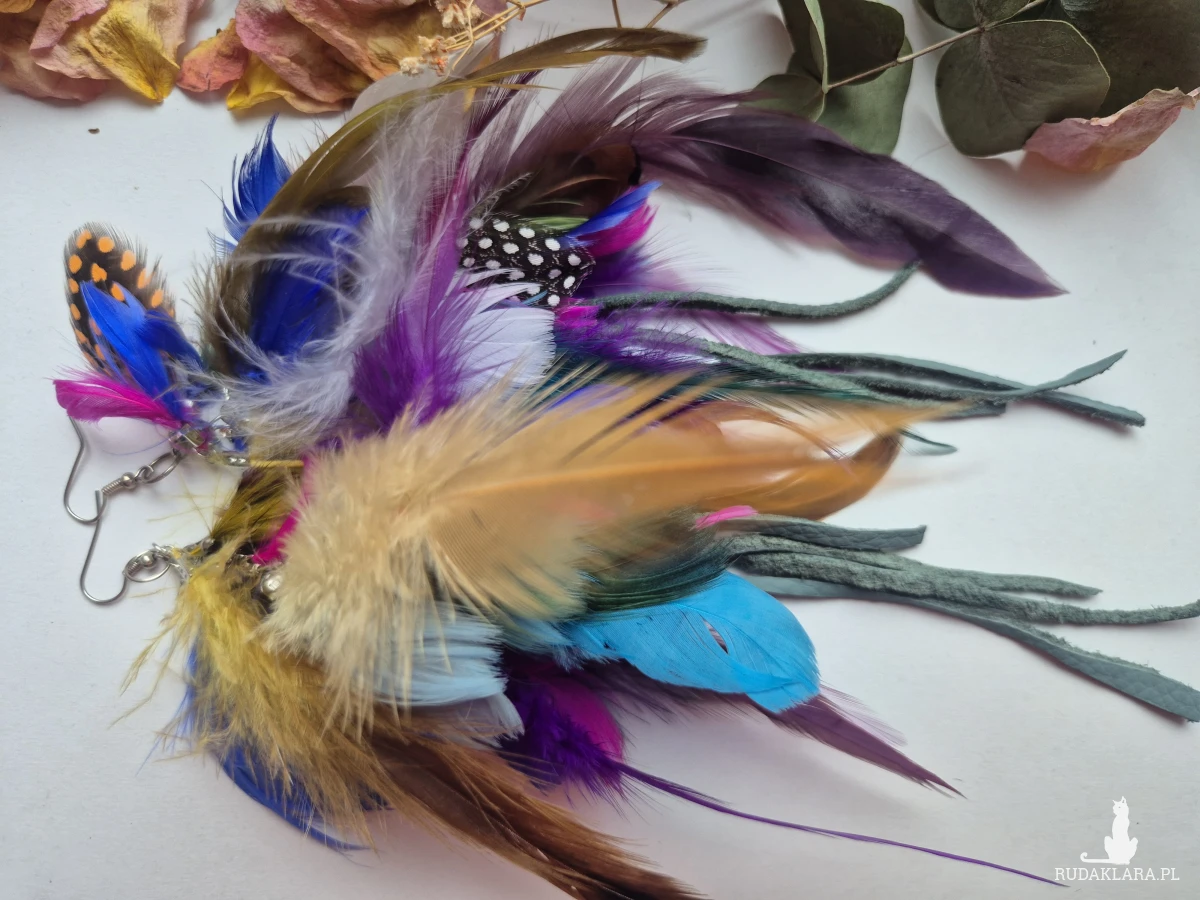 Kolczyki bujne długie pióra