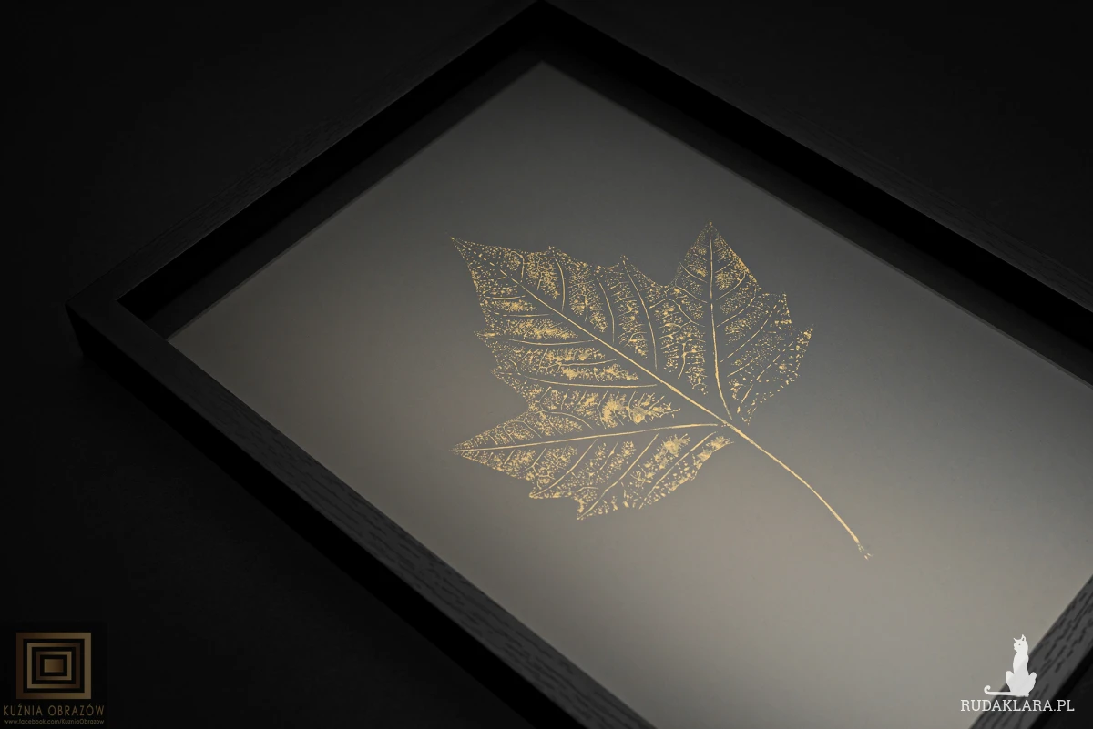 Złoty liść platana klonolistnego – autorska grafika rękodzielnicza