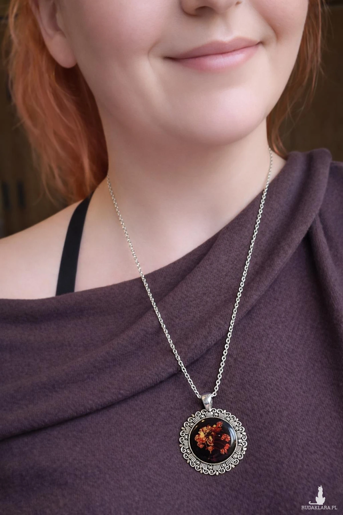 Ozdobna, antyczna oprawa nadaje biżuterii charakter vintage i sprawia, że naszyjnik staje się wyjątkowym dodatkiem do stylizacji – zarówno codziennych, jak i wieczorowych.