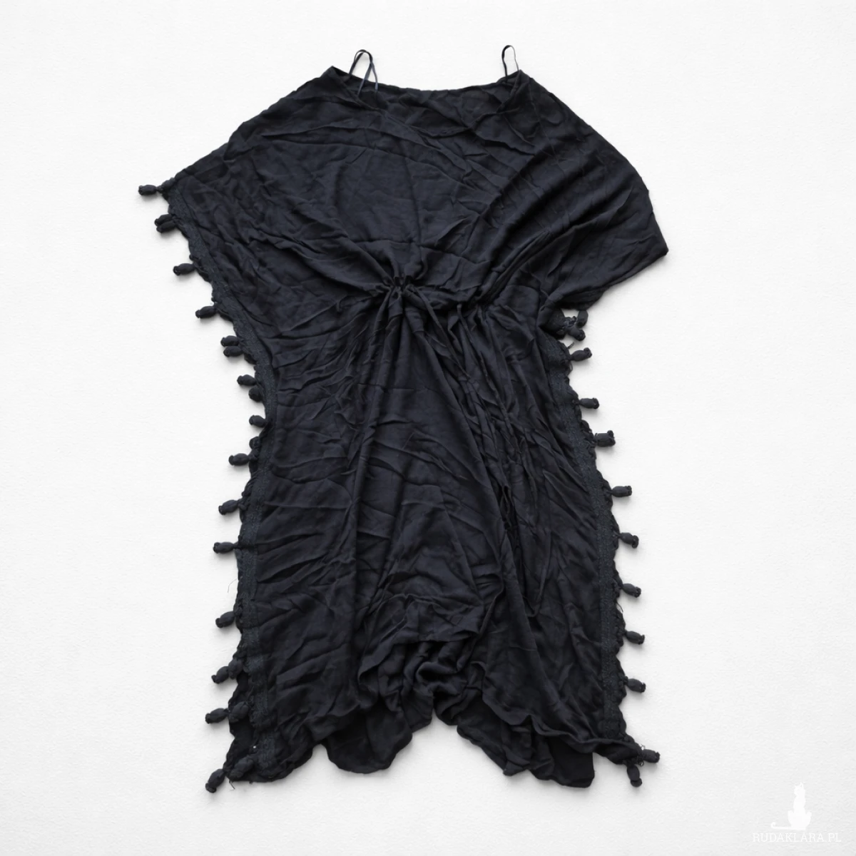 Sukienka oversize m/L z fredzlami boho, zawiązywana w pasie na sznurek, bawelniana, dl całości 120cm,polecam