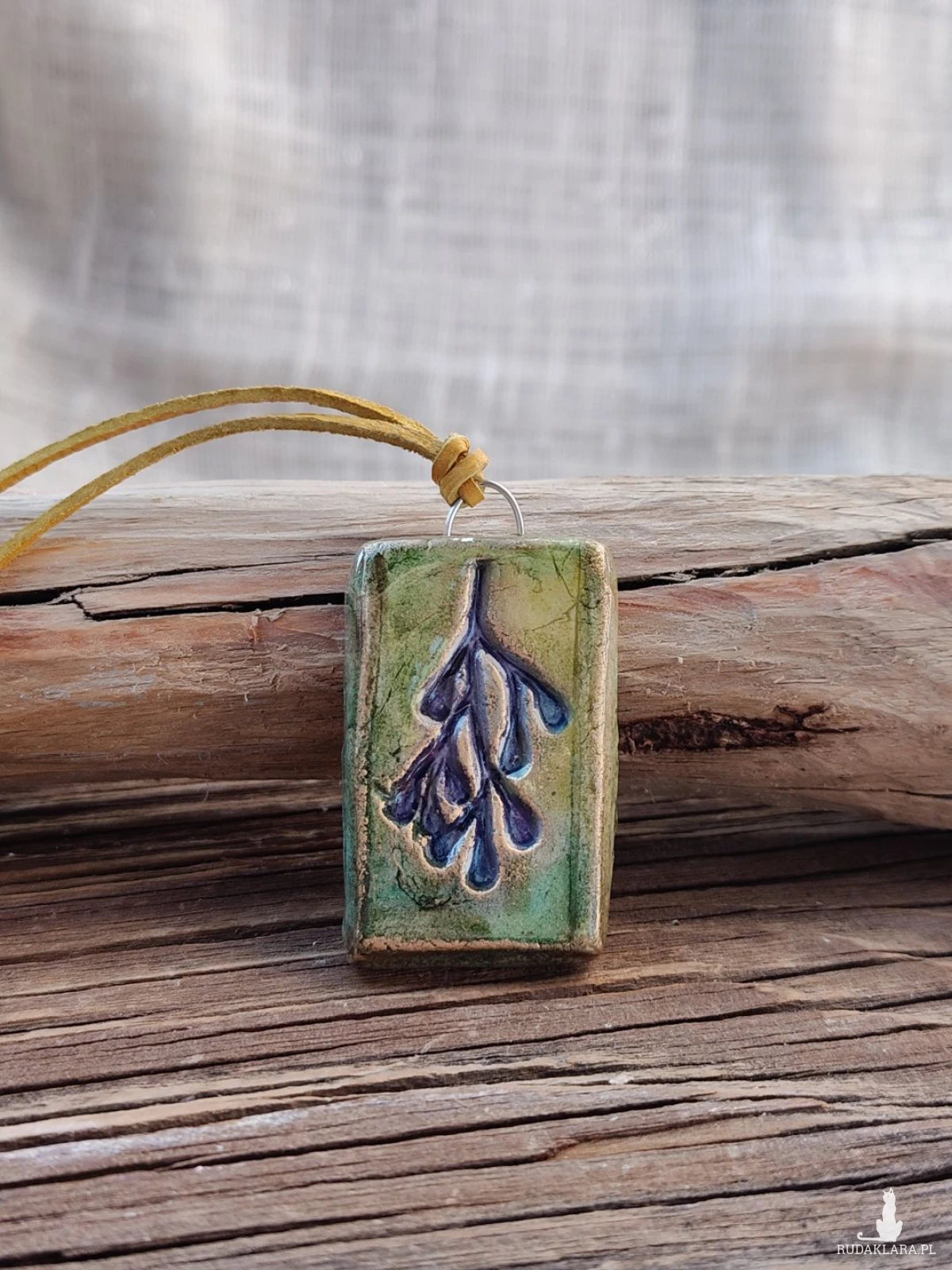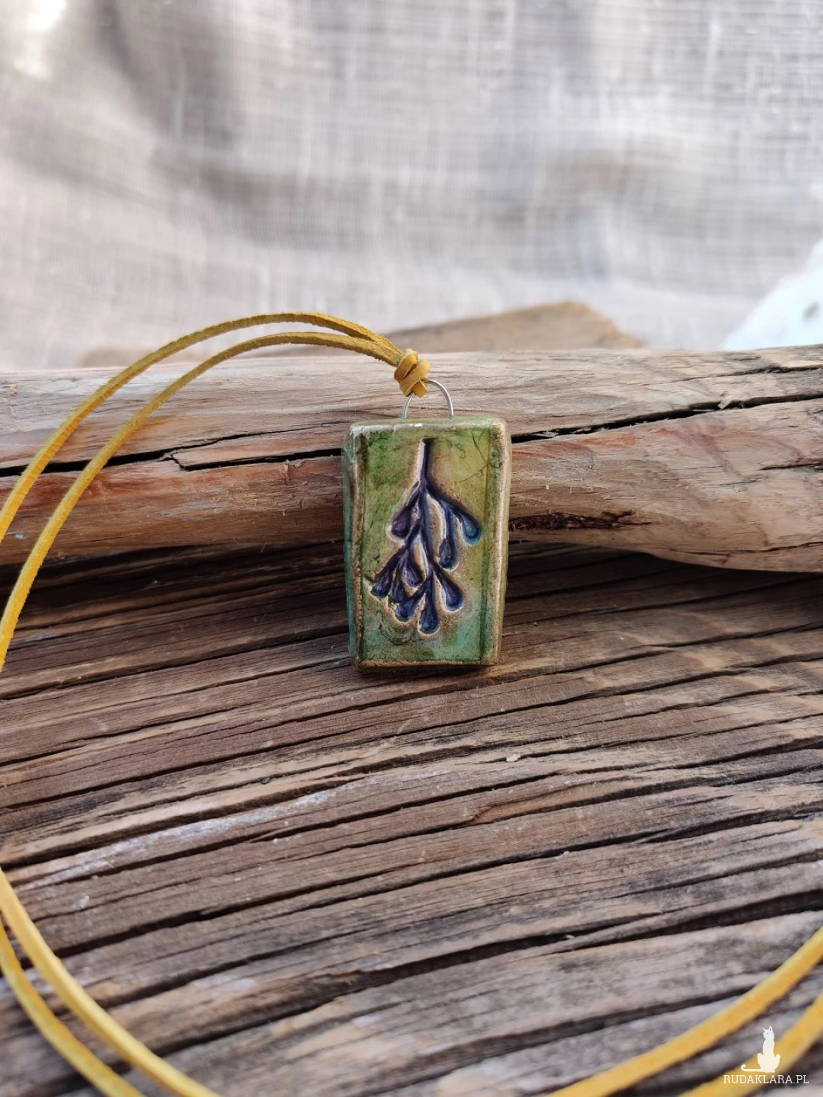 – zawieszony na naturalnym rzemyku w odcieniu jasnego brązu