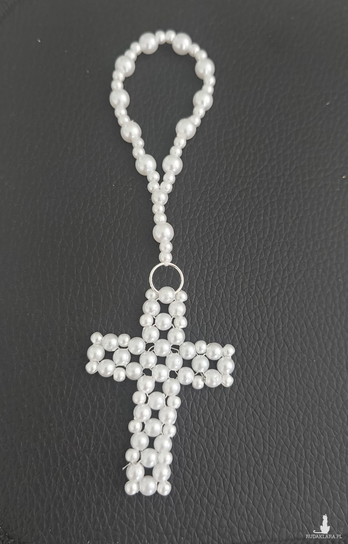 Mini różaniec z koralików w kolorze białym.