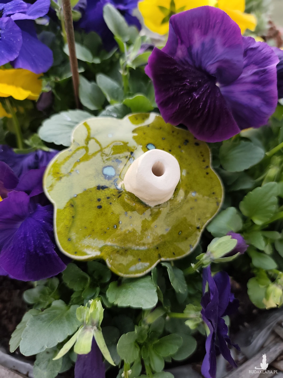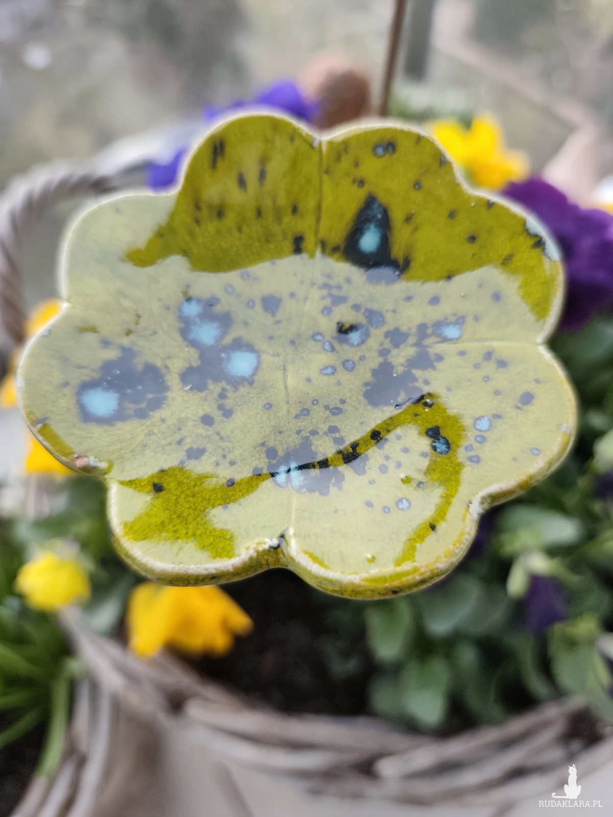 Koniczyna ceramiczna. Wykonana ręcznie, szkliwiona i zamontowana na tyczce bambusowej, piękny dodatek do ogrodu lub na balkon.