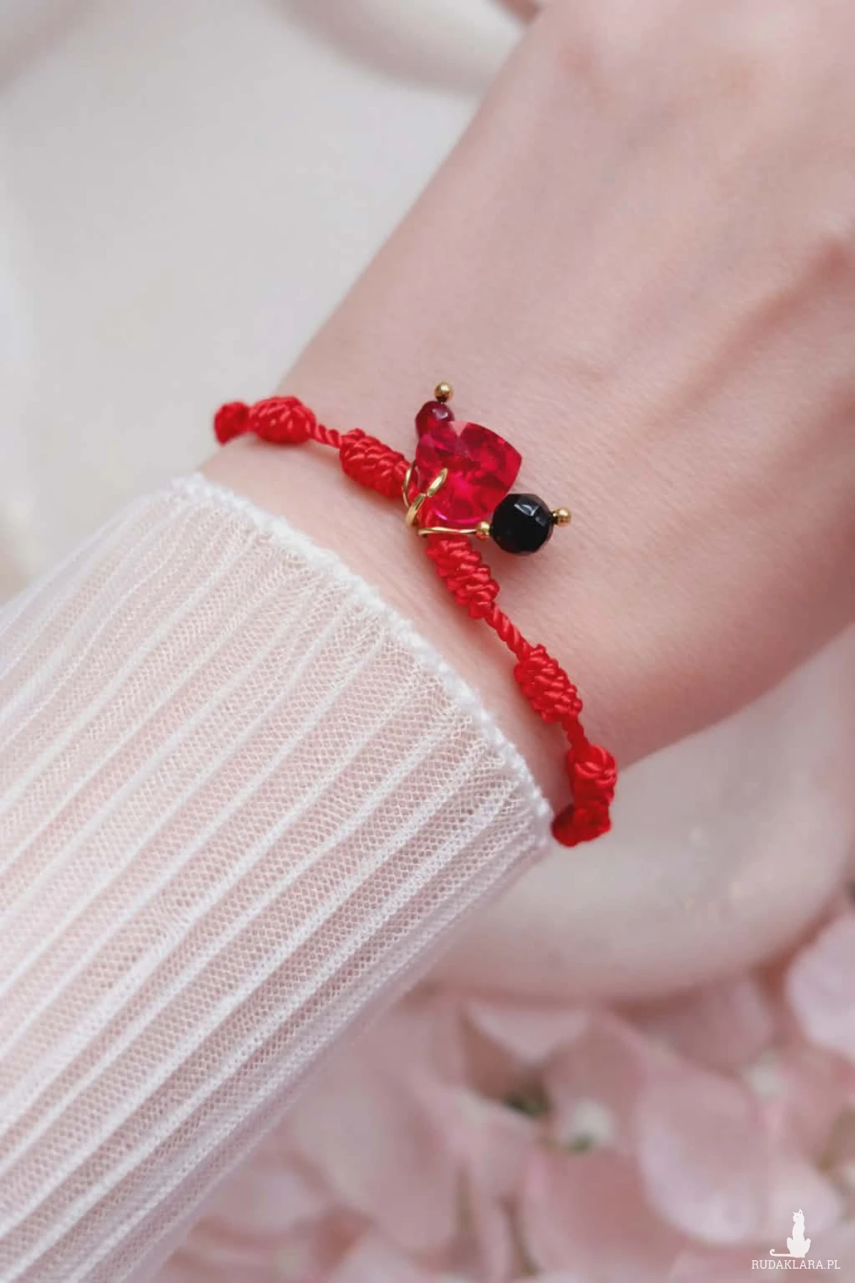 Centralnym elementem jest kryształowe serce Swarovski, które symbolizuje czystość uczuć, miłość oraz piękno energii płynącej prosto z serca. Jego blask przyciąga dobre wibracje i przypomina o tym, że najważniejsza siła zawsze rodzi się wewnątrz nas. Towarzyszą mu dwa wyjątkowe kamienie: Czarny turmalin – jeden z najsilniejszych kamieni ochronnych. Tworzy energetyczną tarczę, która pomaga chronić przed negatywną energią, zazdrością i złymi intencjami. Wspiera stabilność emocjonalną, uziemia i przywraca poczucie bezpieczeństwa. Granat – kamień odwagi i życiowej siły. Pobudza wewnętrzną energię, wzmacnia determinację i pomaga iść za głosem serca. Od wieków uważany jest za kamień pasji, ochrony i witalności. Połączenie tych energii sprawia, że bransoletka staje się małym talizmanem ochrony i mocy, który przypomina, że Twoje serce jest Twoją największą siłą. Bransoletka wykonana jest na regulowanym czerwonym sznurku, symbolizującym ochronę, szczęście i dobrą energię. Każde zamówienie pakowane jest w logowane pudełko CUDowny Szept, gotowe do wręczenia jako wyjątkowy prezent.
