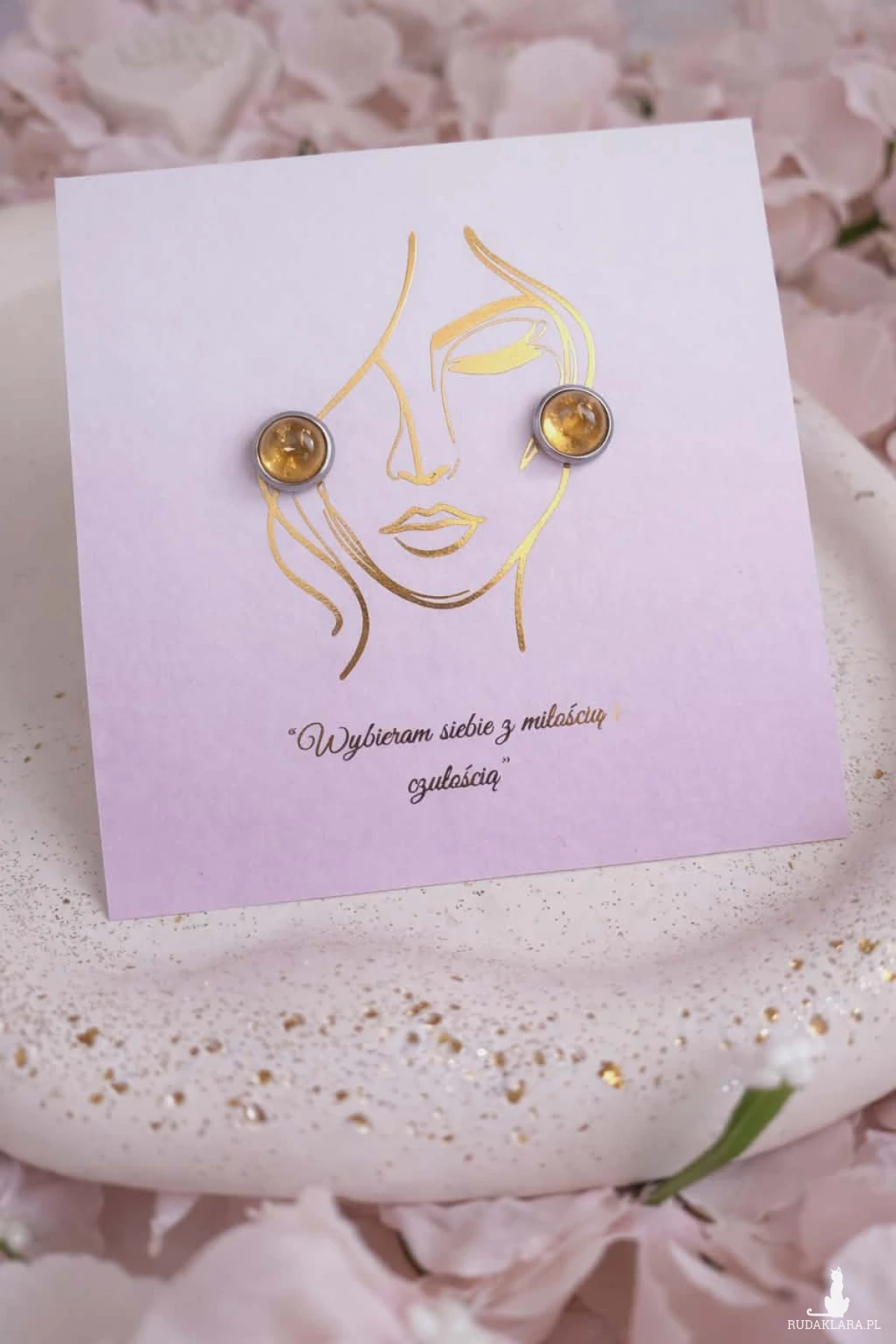 Delikatne, a jednocześnie pełne energii kolczyki sztyfty wykonane ze stali chirurgicznej w kolorze srebrnym, ozdobione naturalnym cytrynem o średnicy 8 mm.