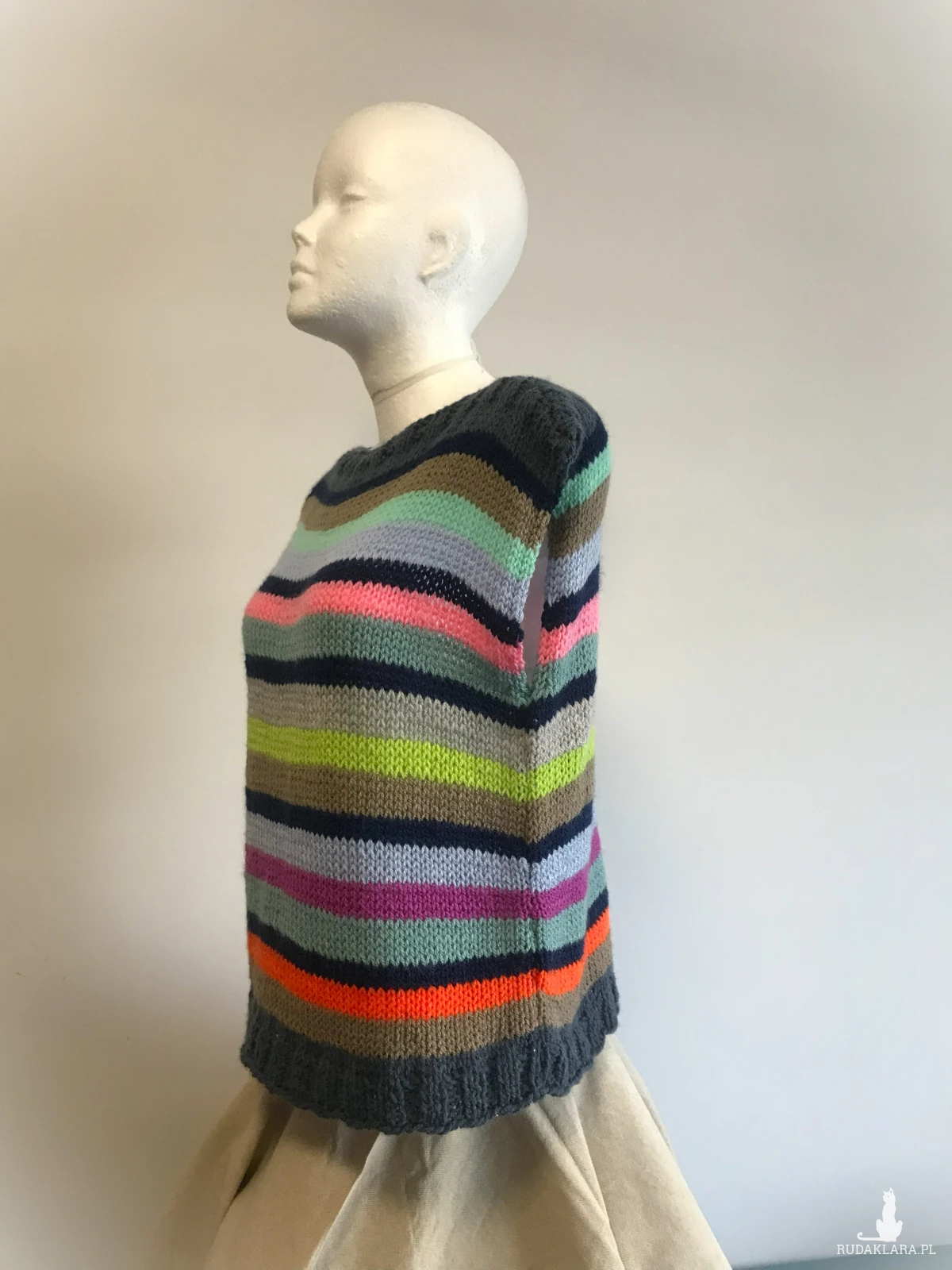 Bluzka - nowa, miękka (włóczka pluszowa), wykonana na drutach, idealna na okresy przejściowe lub mniej upalne dni letnie. Zalecany rozmiar 36 - 40.