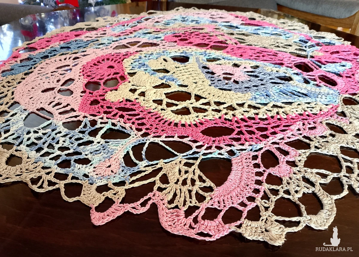 Obrus jest niezwykle dekoracyjny, energetyczny i niepowtarzalny, jest unikalnym egzemplarzem.