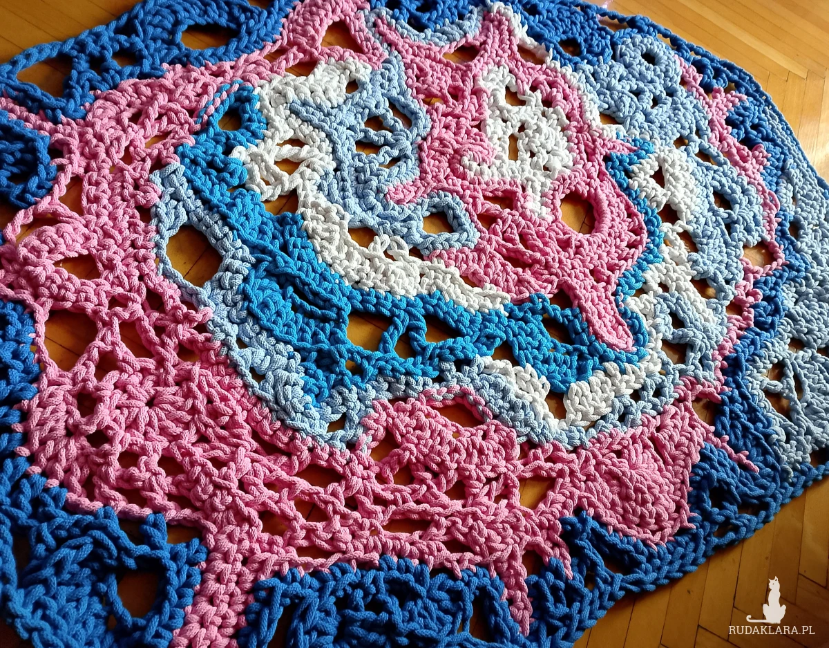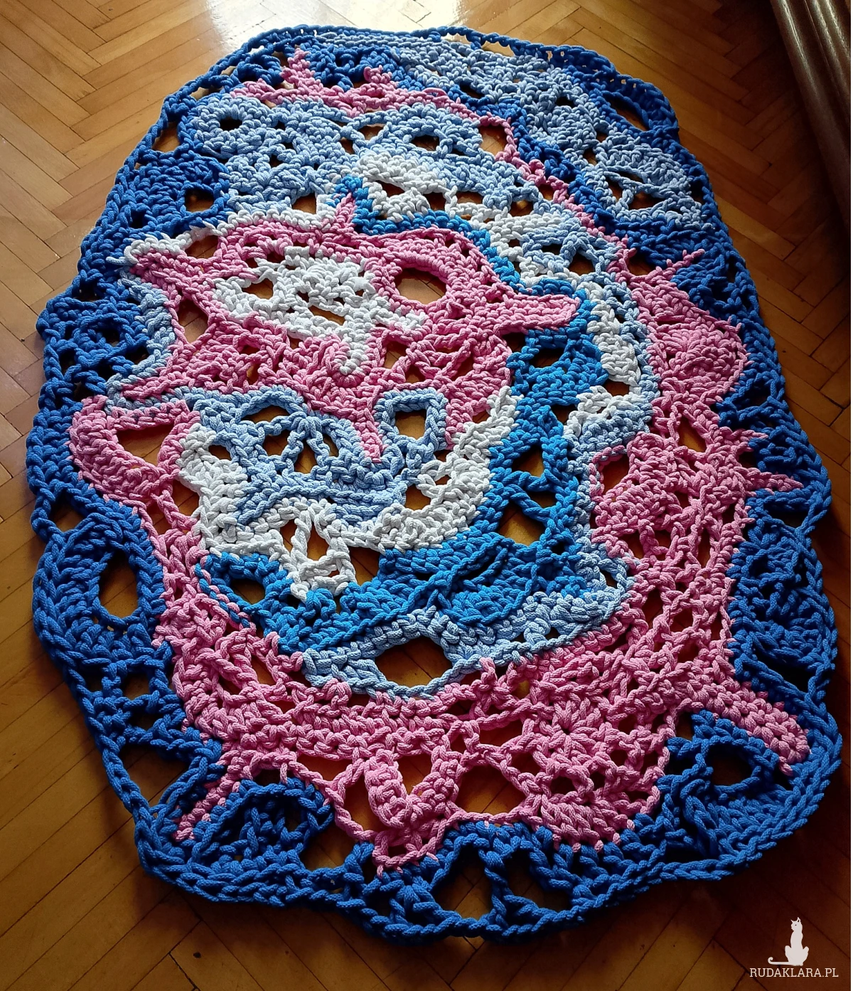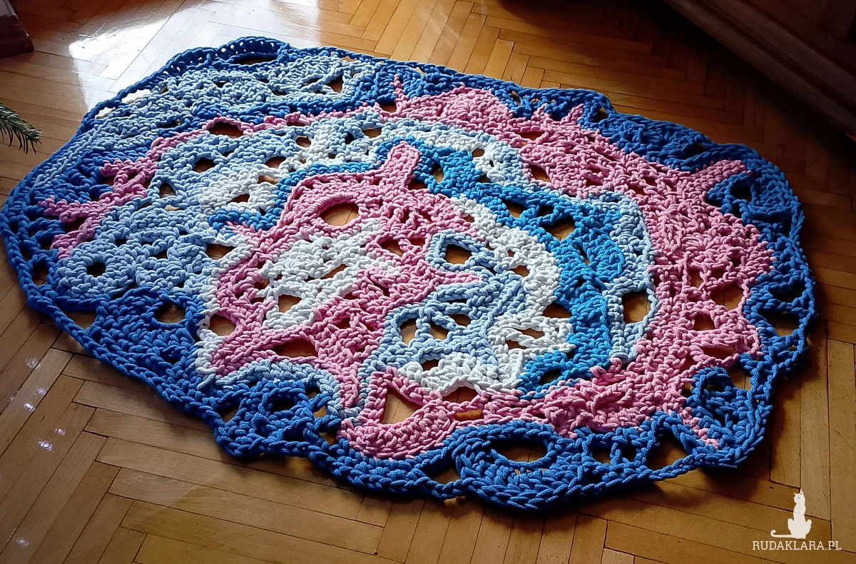 Dywan jest niezwykle dekoracyjny, energetyczny i niepowtarzalny, jest unikalnym egzemplarzem.
