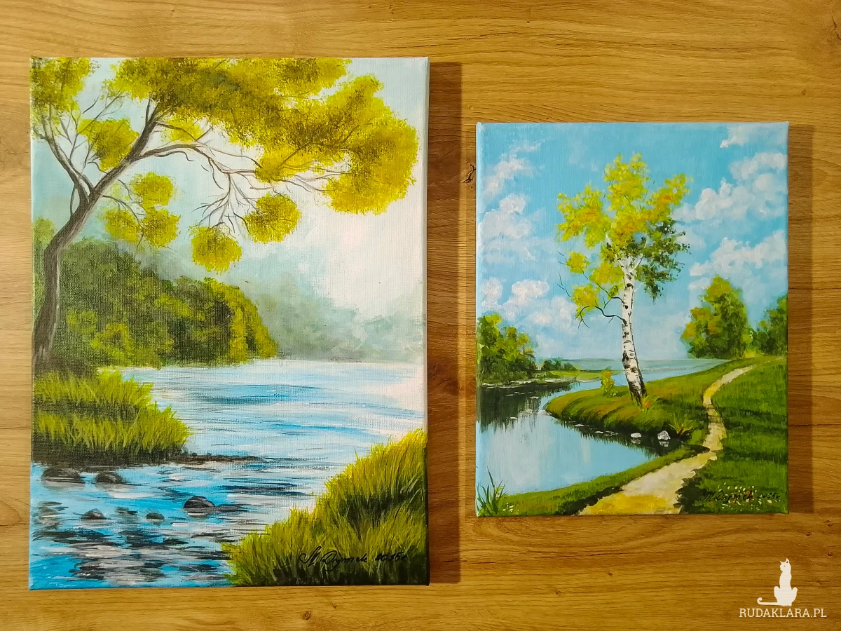 - Tematyka: Polski krajobraz z motywem wody i lasu. Obrazy emanują ciszą i nostalgią.